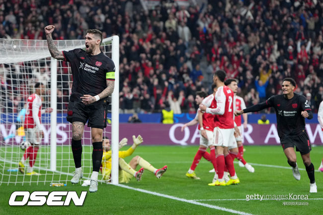 아스날은 12일(한국시간) 독일 레버쿠젠 바이아레나에서 열린 2025-2026시즌 유럽축구연맹(UEFA) 챔피언스리그 16강 1차전에서 바이어 레버쿠젠과 1-1로 비겼다. 후반 막판 카이 하베르츠의 페널티킥 동점골이 패배를 막았다.