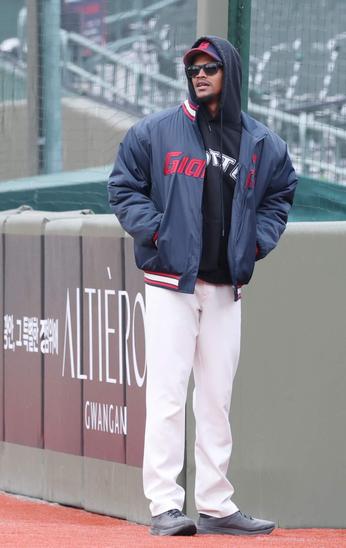 2026 신한 SOL Bank KBO리그 시범경기 롯데 자이언츠 대 KT 위즈 경기가 12일 부산 사직야구장에서 열렸다. 롯데 로드리게스는 추운 날씨에 꽁꽁 싸맨 채 경기를 바라봤다. 그는 추위를 느끼는 모습이었다.