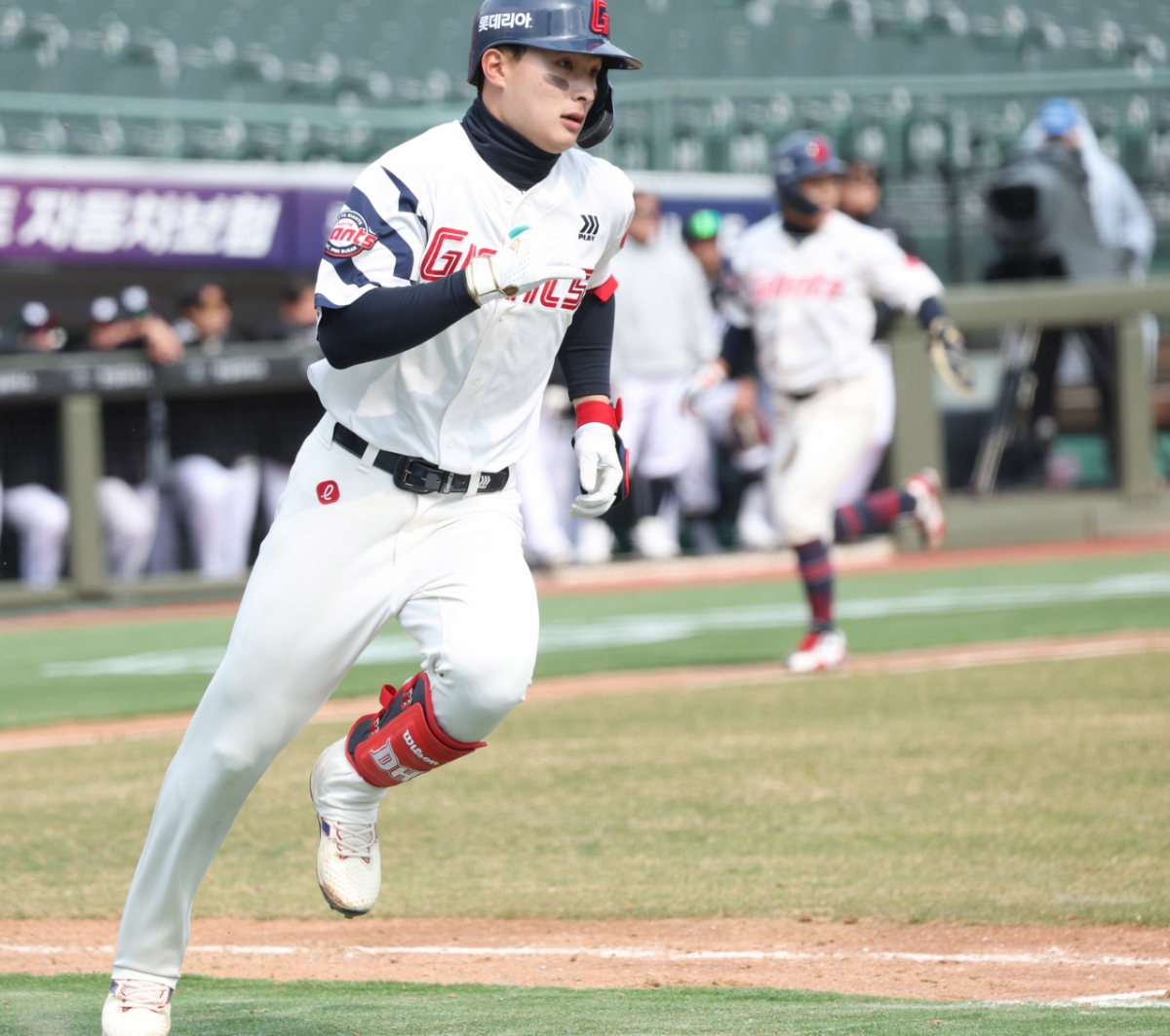2026 신한 SOL Bank KBO리그 시범경기 롯데 자이언츠 대 KT 위즈 경기가 12일 부산 사직야구장에서 열렸다. 롯데 한동희가 5회말 2사 만루에서 우전 적시타를 날렸다. 한동희는 역전 2타점 적시타를 기록하며 질주했다.