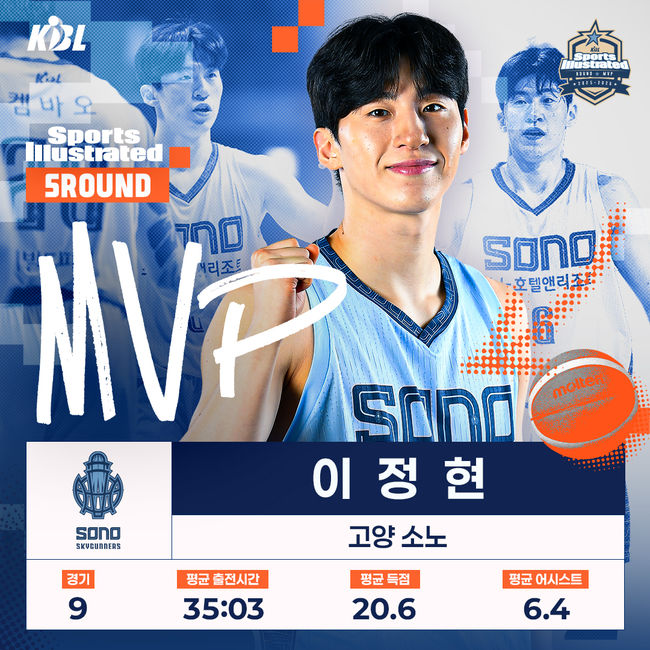 KBL은 13일 "이정현이 스포츠일러스트레이티드 5라운드 MVP로 선정됐다. 그는 2025-2026 LG전자 프로농구 5라운드 MVP 투표에서 총 유효투표수 81표 중 60표를 획득했다"라고 밝혔다.