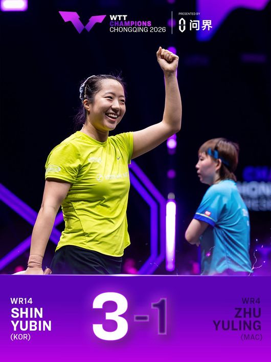 [OSEN=고성환 기자] 신유빈(22, 대한항공)이 한국 여자 탁구 에이스의 품격을 보여줬다. 그가 세계랭킹 4위 주위링(31·마카오)을 무너뜨리며 2026 월드테이블테니스(WTT) 챔피언스 충칭 8강에 올랐다.