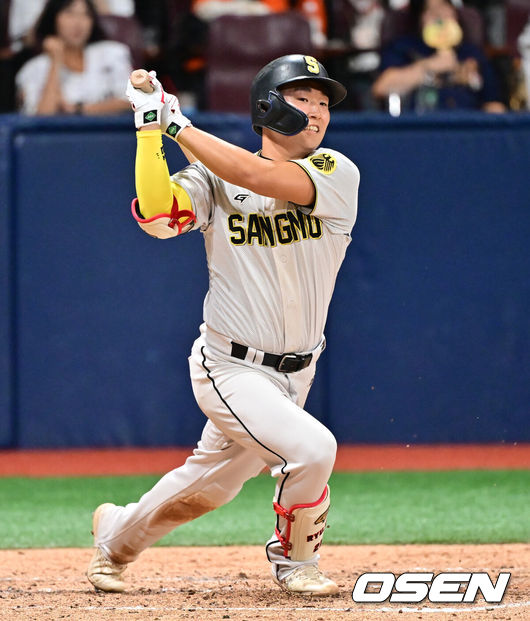 내야수 류현인(26)도 이러한 선수다. 2023년 신인드래프트 7라운드로 지명된 류현인은 야구 예능 프로그램 ‘최강야구’를 통해 이름을 알린 선수다. 프로에 와서는 확실하게 잠재력을 터뜨렸다. 아무리 2군이라지만 4할 타율을 기록한 것. 류현인은 지난해 상무에서 98경기 타율 4할1푼2리(369타수 152안타) 9홈런 80타점 103득점 OPS 1.075의 괴물 같은 성적을 찍어냈다. 한동희(롯데), 이재원(LG)와 함께 상무의 핵타선을 이끈 주역이었다.