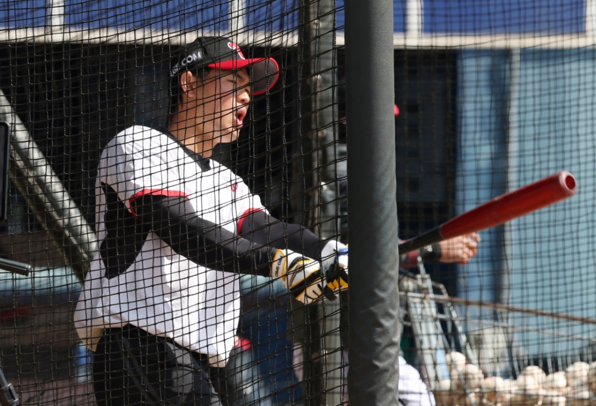 2026 신한 SOL Bank KBO리그 시범경기 NC 다이노스와 LG 트윈스의 경기가 13일 경남 창원시 마산야구장에서 열렸다. LG 이영빈은 타격 훈련을 했다. 이영빈은 타격 훈련 중인 모습이 포착됐다.