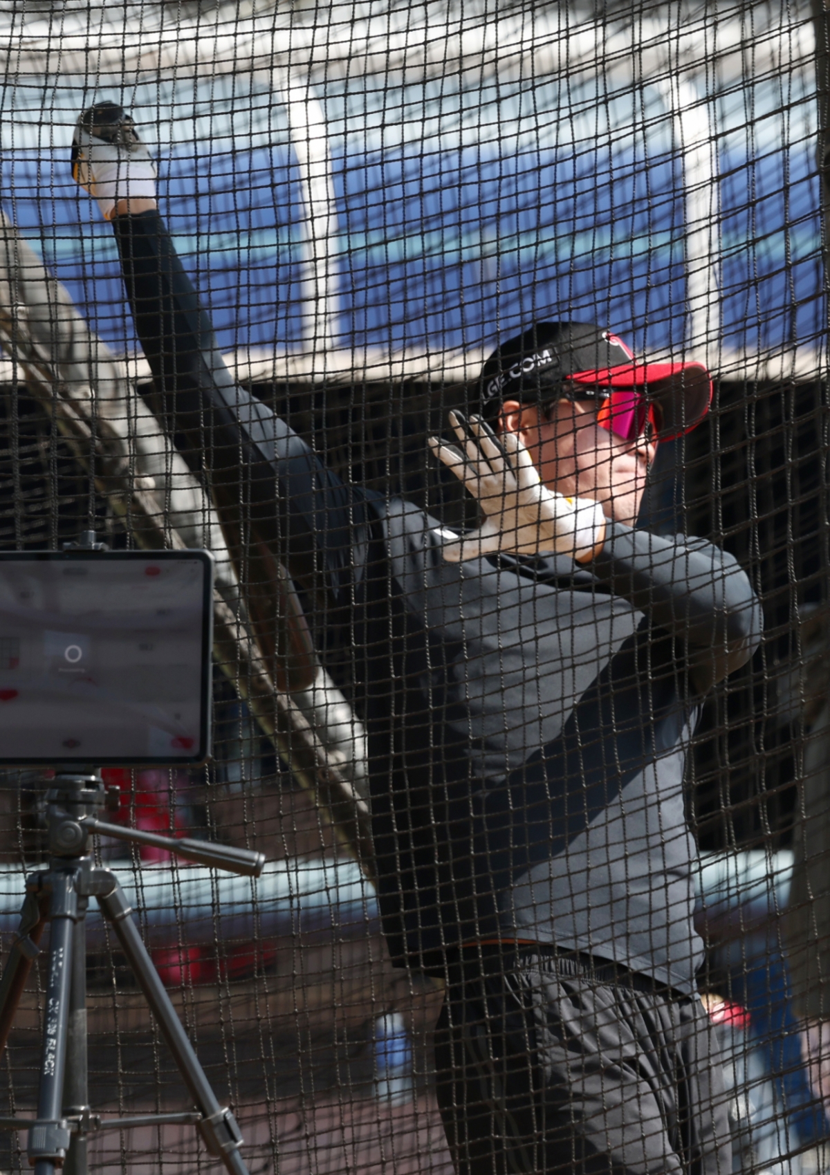 2026 신한 SOL Bank KBO리그 시범경기 NC 다이노스 대 LG 트윈스 경기가 13일 경남 창원시 마산야구장에서 열렸다. LG 천성호가 타격 훈련을 했다. 천성호는 물오른 타격감을 보였다.