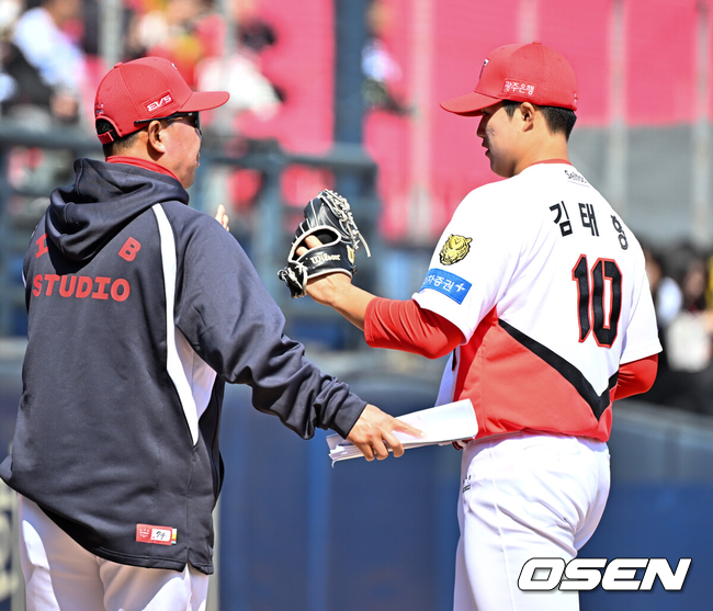 KIA 선발로 나선 김태형도 합격점을 받았다. 김재환에게 홈런을 맞았지만 3이닝을 4피안타 3탈삼진 1실점으로 무난하게 첫 피칭을 했다. 최고구속 149km 직구(30개)를 위주로 슬라이더(13개) 체인지업(3개) 커브(1개)를 던졌다. 볼의 힘은 보였으나 실투가 홈런으로 이어졌다.