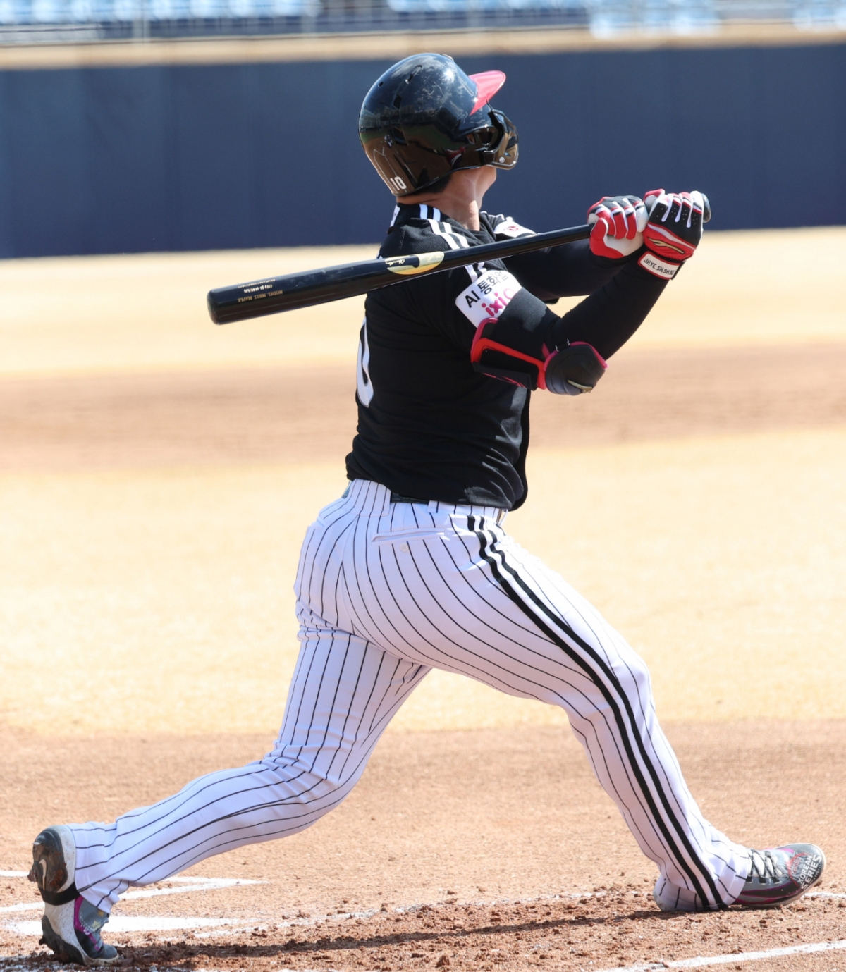 2026 신한 SOL Bank KBO리그 시범경기 NC 다이노스와 LG 트윈스 경기가 13일 경남 창원시 마산야구장에서 열렸다. LG 오지환은 5회초 무사에서 힘차게 타격했다. 이 경기는 시범경기였다.