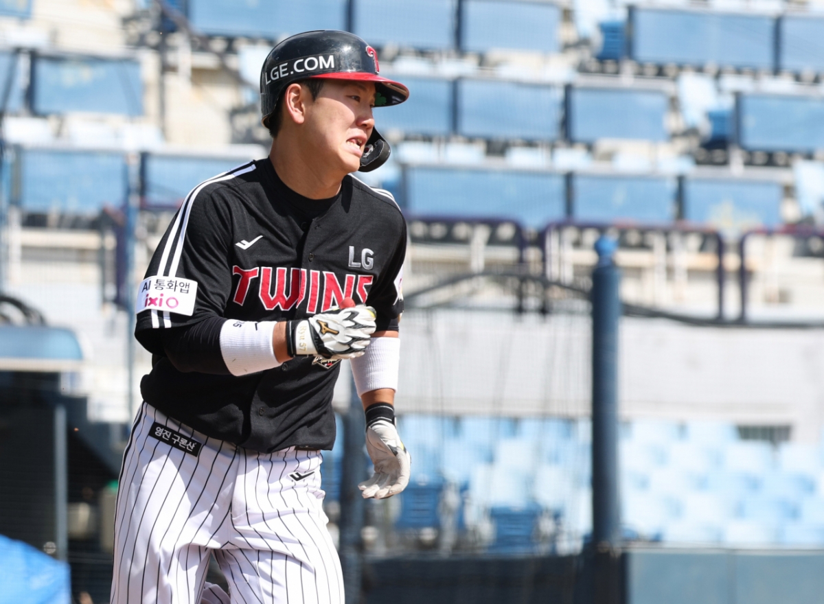 LG 이주헌이 3회초 1사에서 동점 좌월 1점 홈런을 날리고 질주하고 있다.
