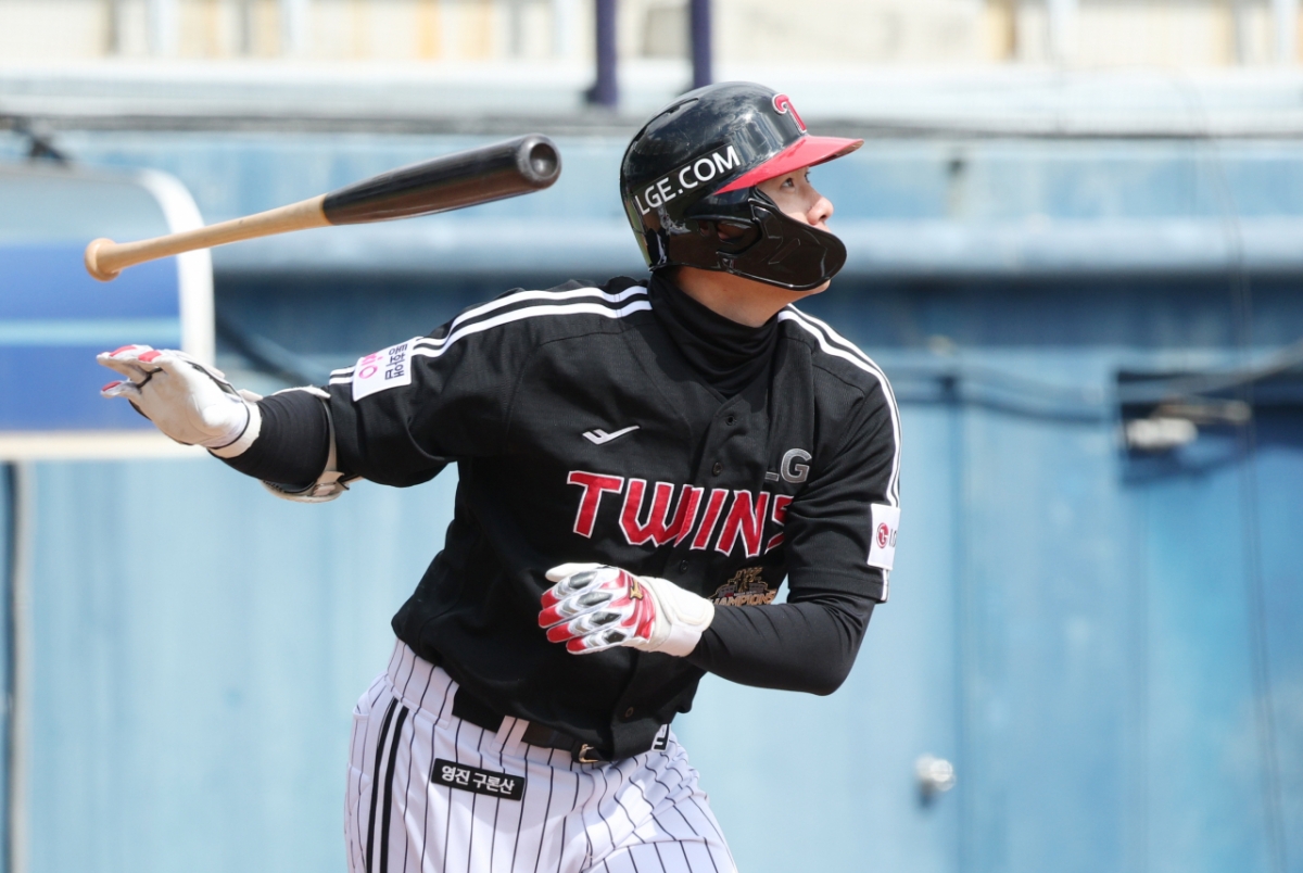 LG 홍창기가 호쾌힌 타격을 하고 있다.