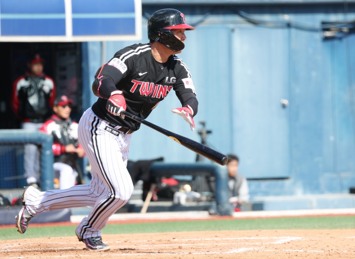 2026 신한 SOL Bank KBO리그 시범경기 NC 다이노스 대 LG 트윈스 경기가 13일 경남 창원시 마산야구장에서 열렸다. LG 오지환이 힘찬 타격을 했다. 오지환은 타구를 갈랐다.