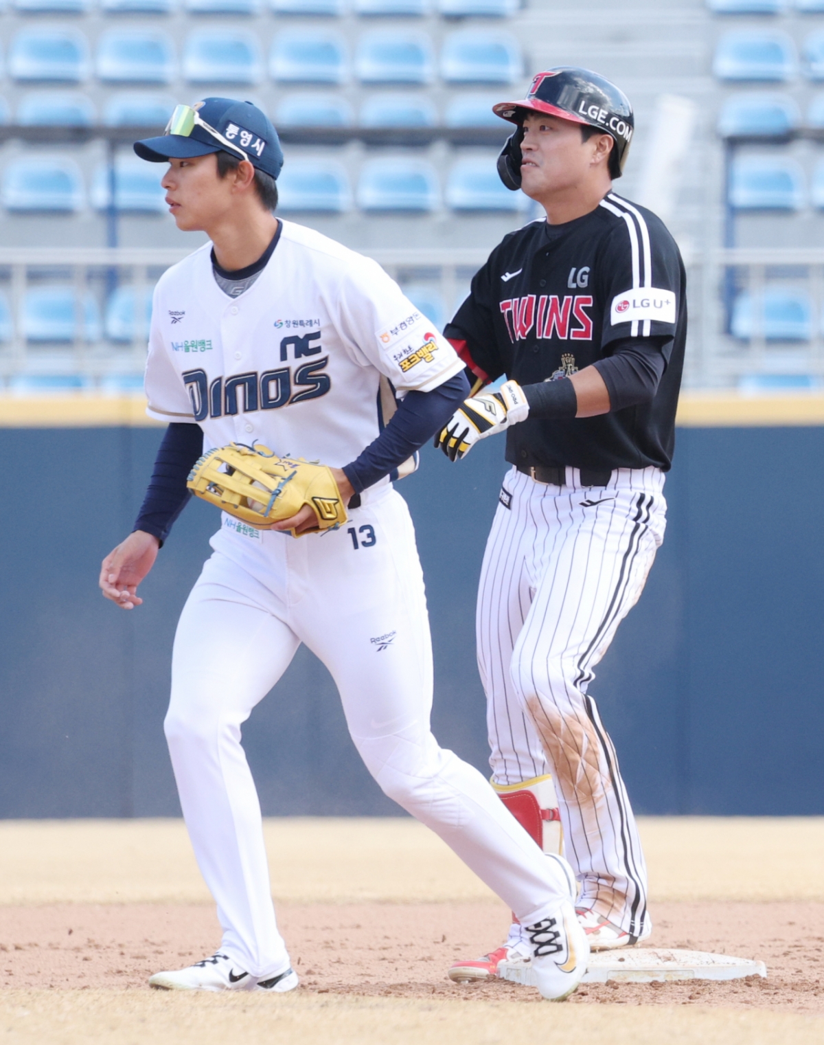 2026 신한 SOL Bank KBO리그 시범경기 NC 다이노스와 LG 트윈스 경기가 13일 경남 창원시 마산야구장에서 열렸다. LG 천성호는 7회초 2사 만루 상황에서 2타점 적시 2루타를 기록했다. 천성호는 출루 후 숨을 고르는 모습을 보였다. 2026 신한 SOL Bank KBO리그 시범경기 NC 다이노스 대 LG 트윈스 경기가 13일 경남 창원시 마산야구장에서 열렸다. LG 천성호가 7회초 2사 만루에서 2타점 적시 2루타를 날리고 출루한 후 숨을 고르고 있다. 독자들의 PICK! "'음주 뺑소니' 지상렬이 대리운전 모델?" 26년 전 사건 파묘 "남친에 4억 뜯겨" 여배우 충격에...은둔 생활→고깃집 서빙 "남경주, 애처가·딸바보였는데"…성폭행 혐의 '충격' 한고은, '7년째 무직' 남편과 부부싸움…"일주일 한번씩 다퉈"