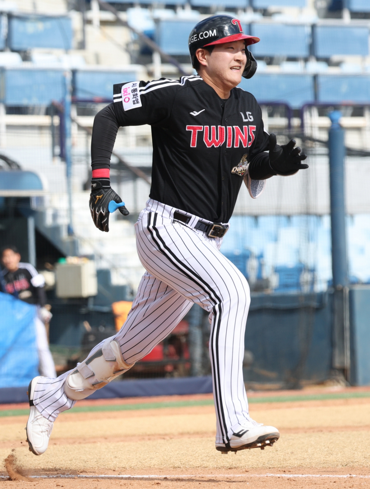 2026 신한 SOL Bank KBO리그 시범경기 NC 다이노스와 LG 트윈스의 경기가 13일 경남 창원시 마산야구장에서 열렸다. LG 문정빈이 타격을 한 후 질주했다. 문정빈은 경기에서 끝까지 최선을 다했다.