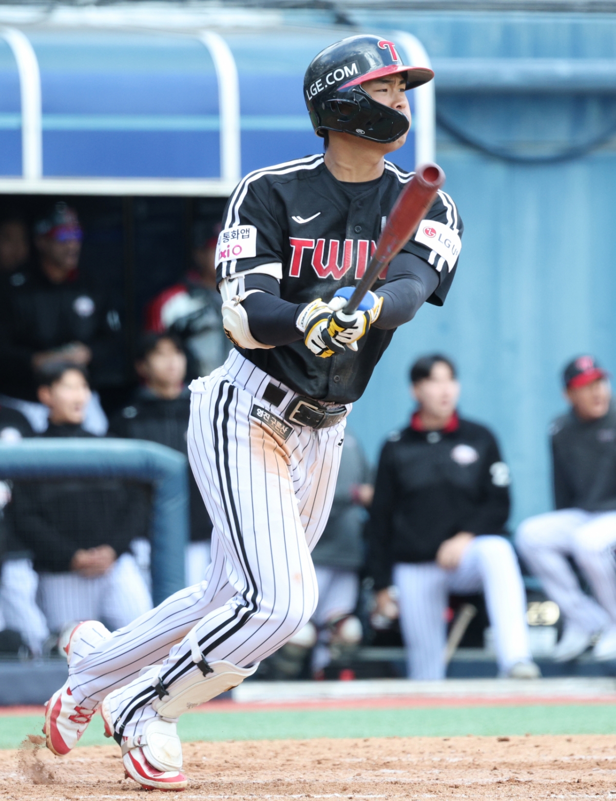 LG 이영빈이 호쾌한 타격을 하고 있다.