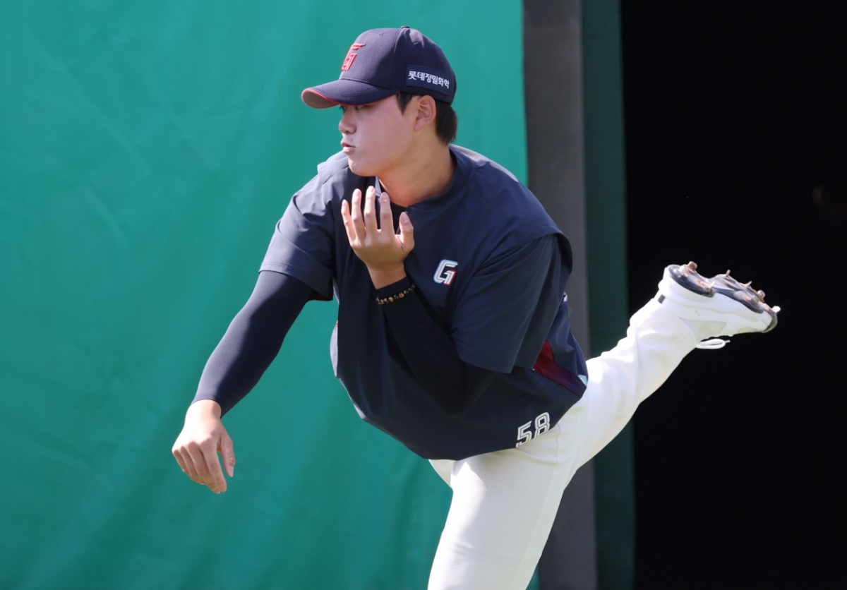 2026 신한 SOL Bank KBO리그 시범경기 롯데 자이언츠 대 LG 트윈스 경기가 14일 부산 사직야구장에서 열렸다. 롯데 투수 박준우가 불펜에서 드릴 훈련을 했다. 박준우는 묵직한 피니시를 선보였다.