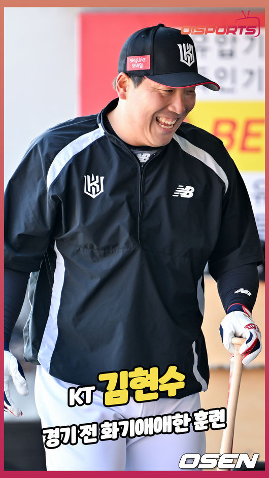 경기 전 KT 김현수가 타격 연습을 하며 미소 짓고 있다. 2026.03.14 / [email protected]