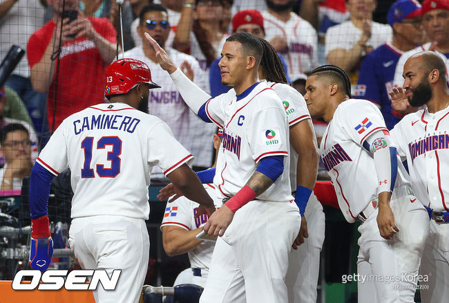도미니카공화국 타선은 강하다. 메이저리그 타자들이 즐비하다. 지난해 메이저리그에서 타티스 주니어가 25홈런, 마르테가 28홈런, 소토가 43홈런, 게레로 주니어가 23홈런, 마차도가 27홈런, 카미네로가 45홈런, 로드리게스가 32홈런, 웰스가 21홈런, 페르도모가 20홈런을 쳤다.