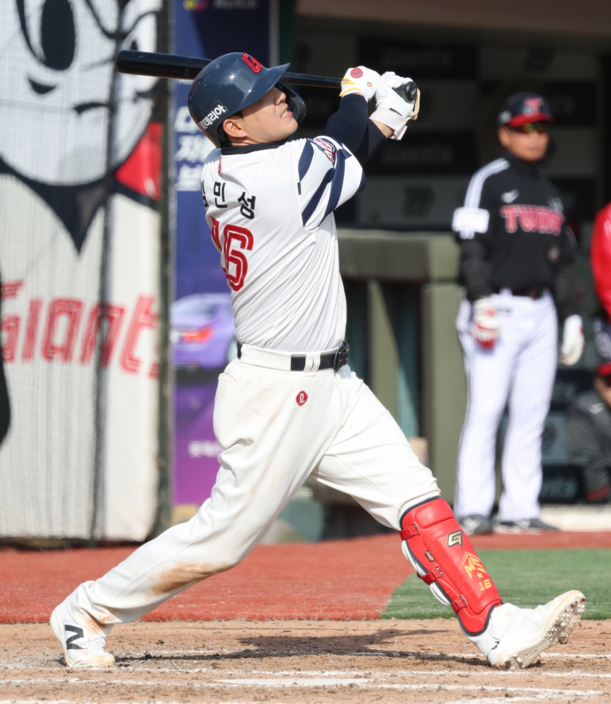 2026 신한 SOL Bank KBO리그 시범경기 롯데 자이언츠 대 LG 트윈스 경기가 14일 부산 사직야구장에서 열렸다. 롯데 김민성이 힘차게 타격했다. 김민성은 가뿐하게 타격하는 모습을 보였다.