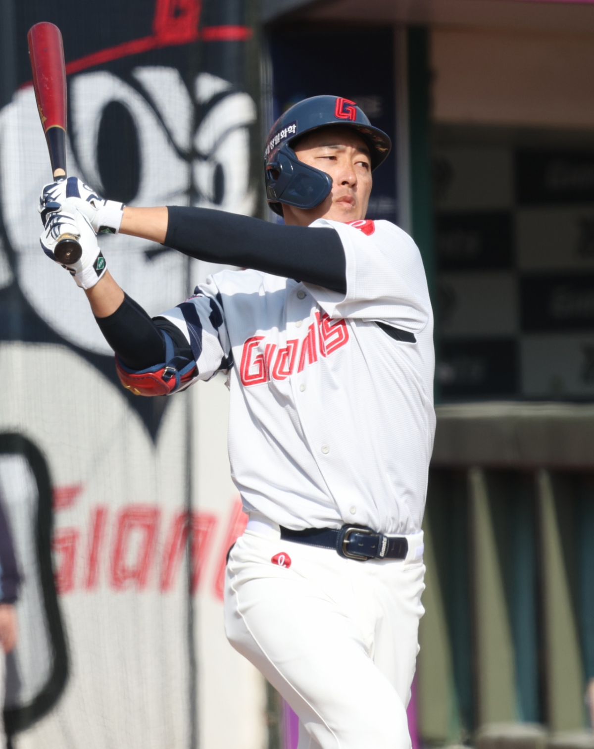 2026 신한 SOL Bank KBO리그 시범경기 롯데 자이언츠 대 LG 트윈스 경기가 14일 부산 사직야구장에서 열렸다. 롯데 노진혁이 힘차게 타격했다. 노진혁은 기회를 놓치지 않았다.