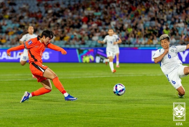 출발부터 흐름은 한국의 것이었다. 전반 9분 손화연이 포문을 열었다. 최유리의 침투 패스를 받은 그는 페널티 지역 오른쪽에서 침착한 오른발 슈팅으로 골망을 흔들었다. 이른 선제골이었다.