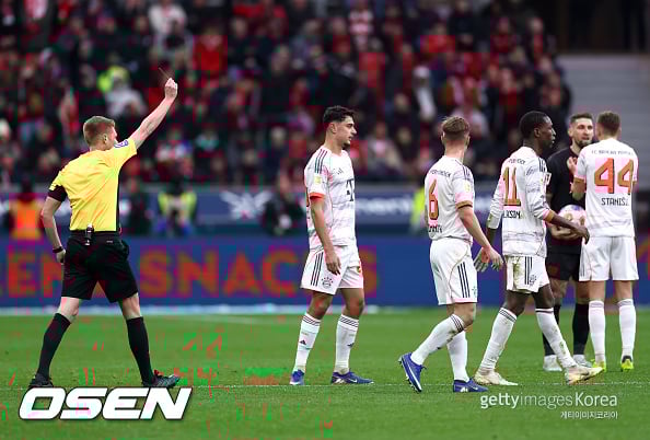 전반 막판에는 악재까지 겹쳤다. 전반 42분 잭슨이 수비 과정에서 마틴 테리어의 발목을 가격했고 VAR 확인 후 레드카드를 받았다. 수적 열세에 놓인 바이에른은 0-1로 뒤진 채 전반을 마쳤다.