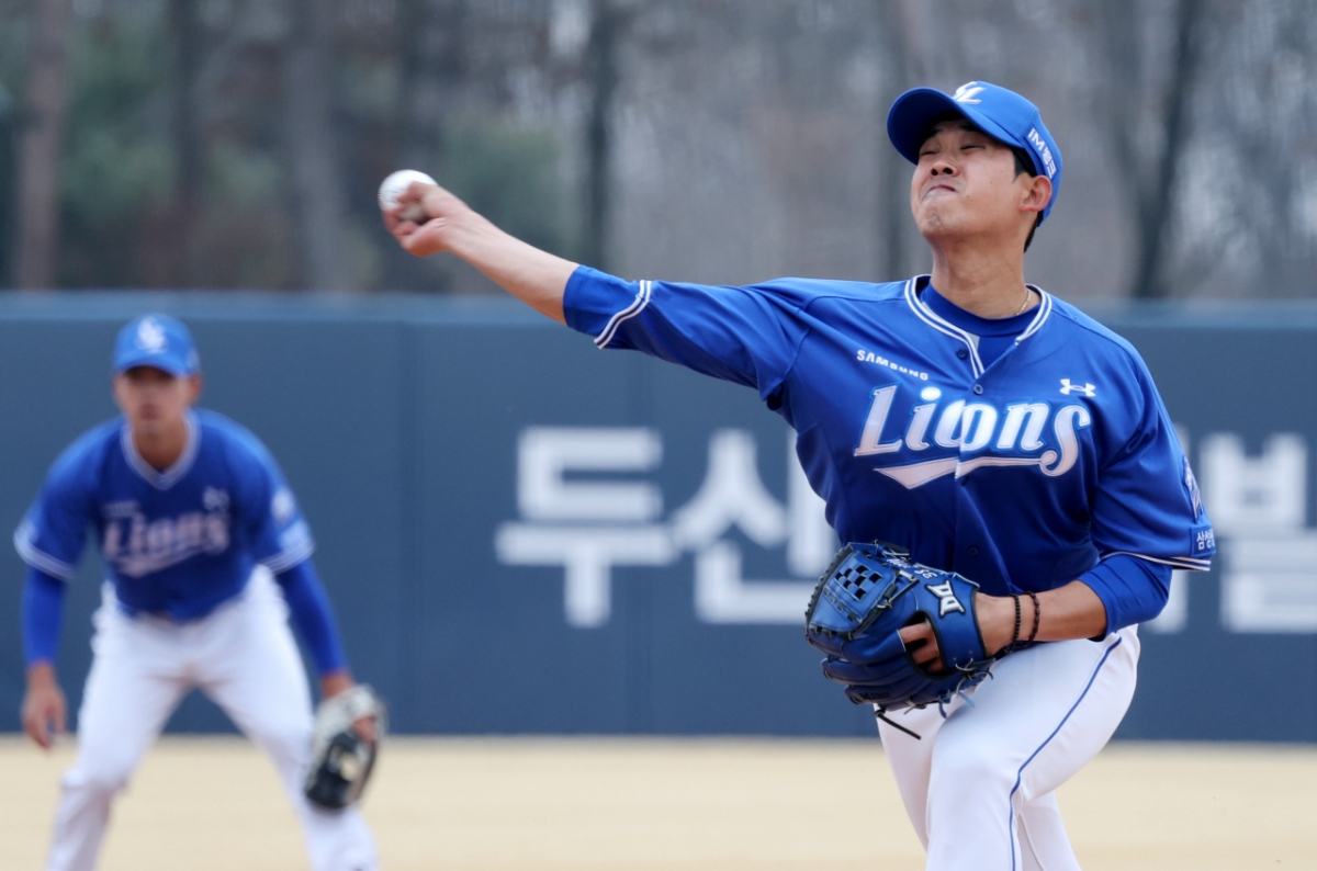 삼성 선발투수 임기영이 15일 이천 두산베어스파크에서 열린 2026 프로야구 시범경기 두산베어스와 삼성라이온즈 경기에서 선발로 나서 역투하고 있다. 2026.03.15.