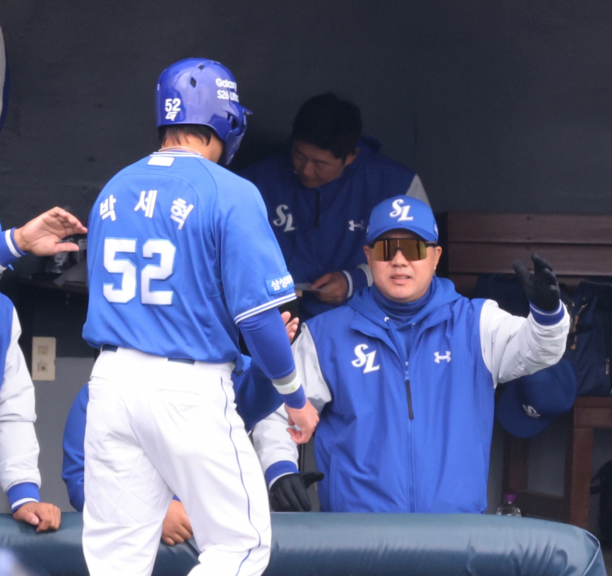 2026년 3월 15일 이천 두산베어스파크에서 열린 프로야구 시범경기에서 삼성 라이온즈와 두산 베어스가 경기를 펼쳤다. 삼성 박진만 감독은 2회초 박세혁의 득점을 축하했다. 이 경기는 2026 프로야구 시범경기의 일부였다. 삼성 박진만 감독이 15일 이천 두산베어스파크에서 열린 2026 프로야구 시범경기 두산베어스와 삼성라이온즈 경기에서 박세혁 득점을 하하고 있다. 2026.03.15. 독자들의 PICK! "옆방서 불륜" 남편의 내연녀는 '엄마'...여배우, 20년 절연 고백 "'음주 뺑소니' 지상렬이 대리운전 모델?" 26년 전 사건 파묘 "남친에 4억 뜯겨" 여배우 충격에...은둔 생활→고깃집 서빙 "남경주, 애처가·딸바보였는데"…성폭행 혐의 '충격'
