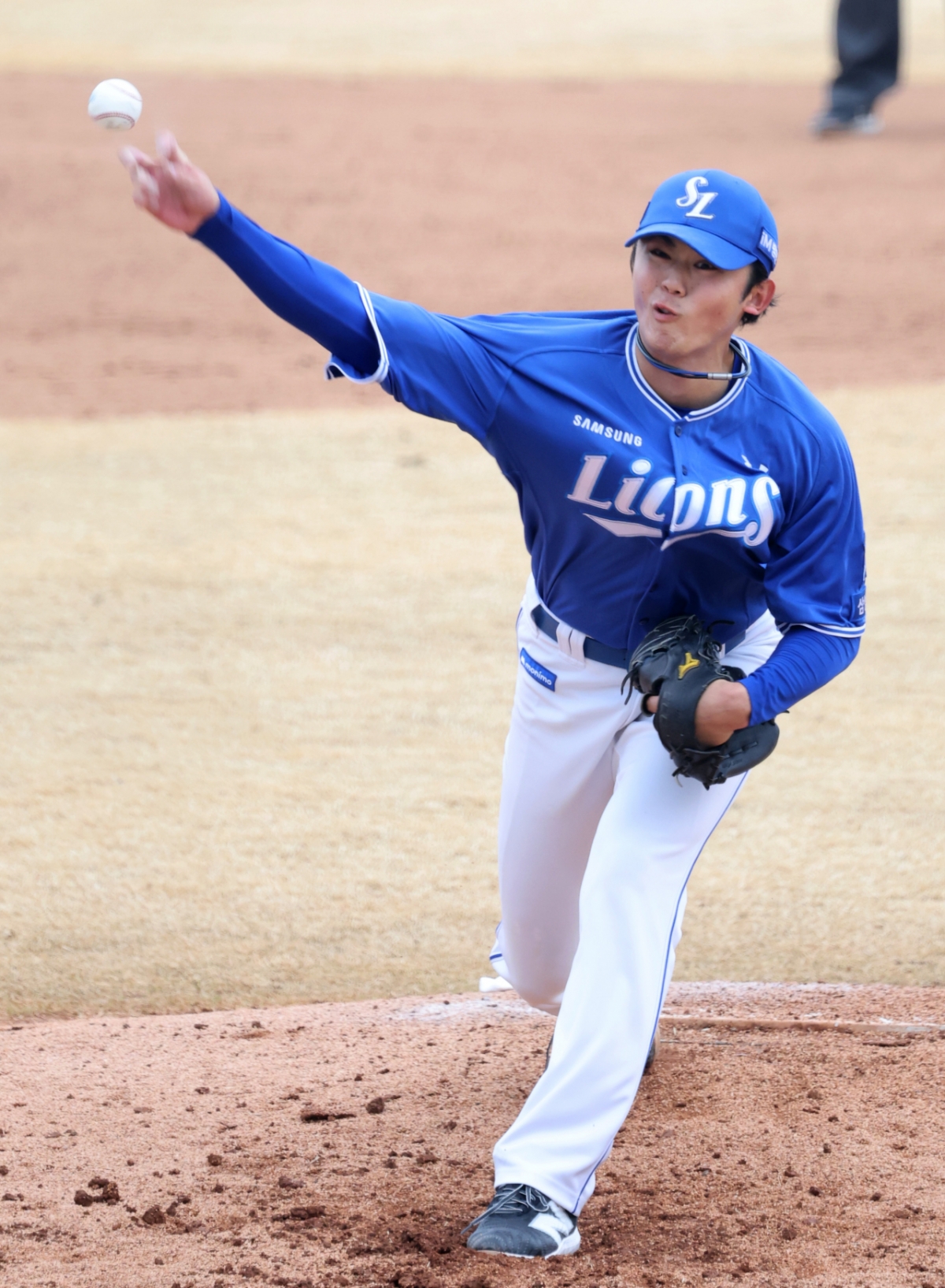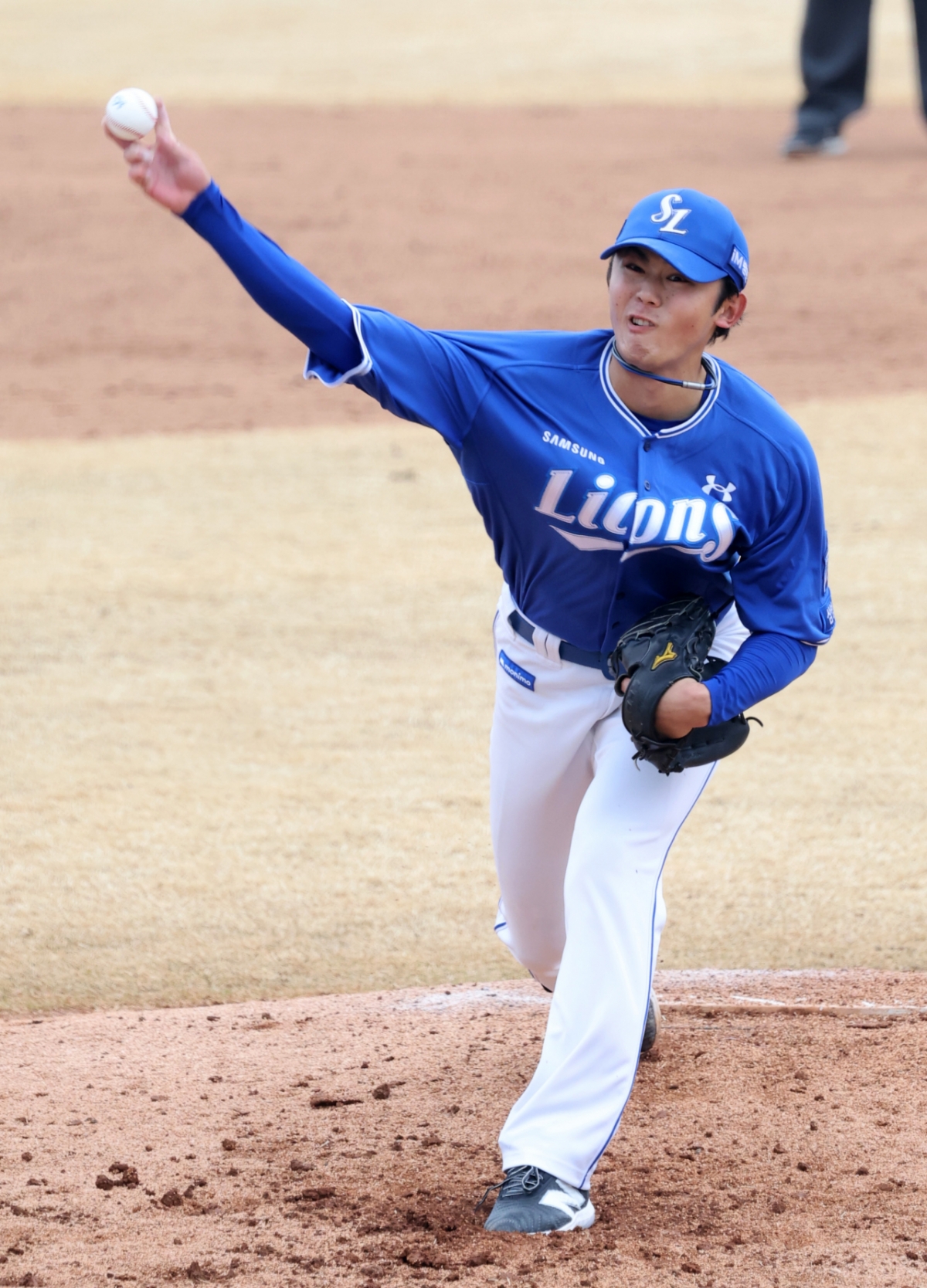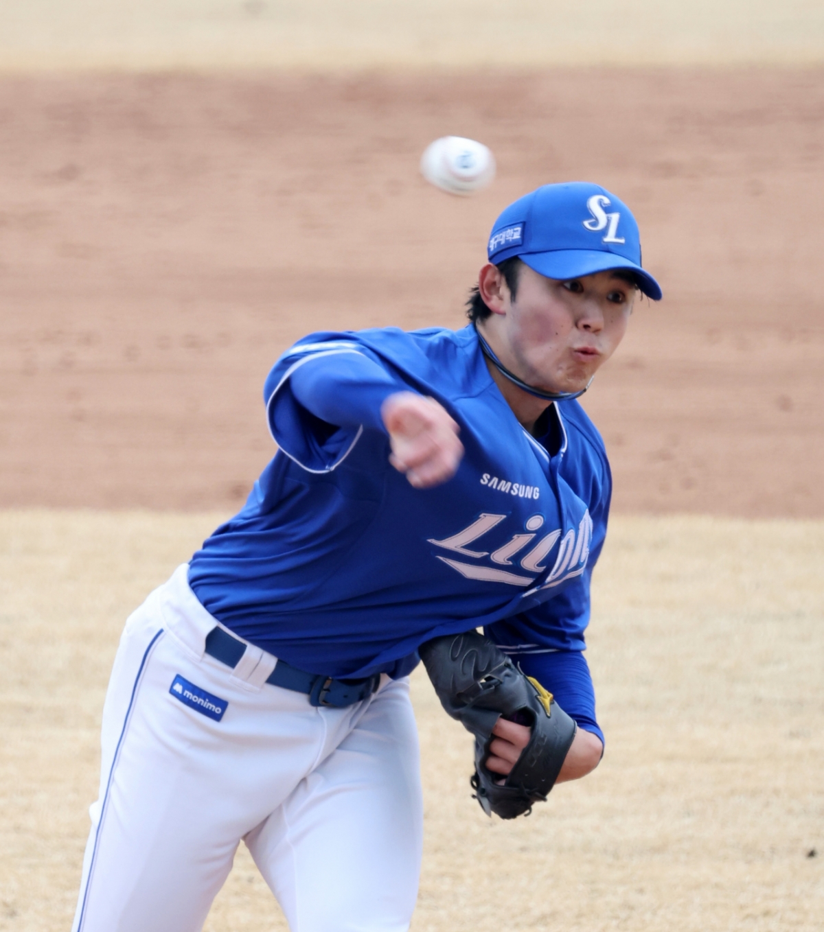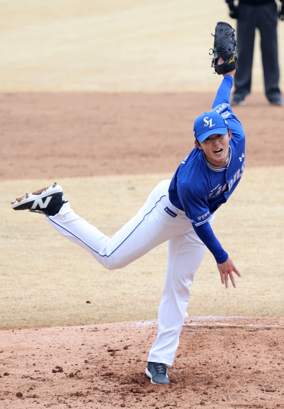 삼성 우완투수 미야지가 15일 이천 두산베어스파크에서 열린 2026 프로야구 시범경기 두산베어스와 삼성라이온즈 경기에서 역투하고 있다. 2026.03.15.