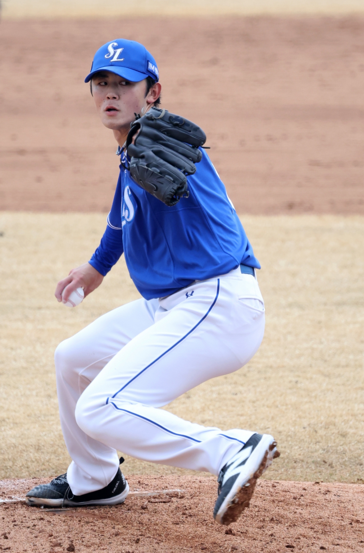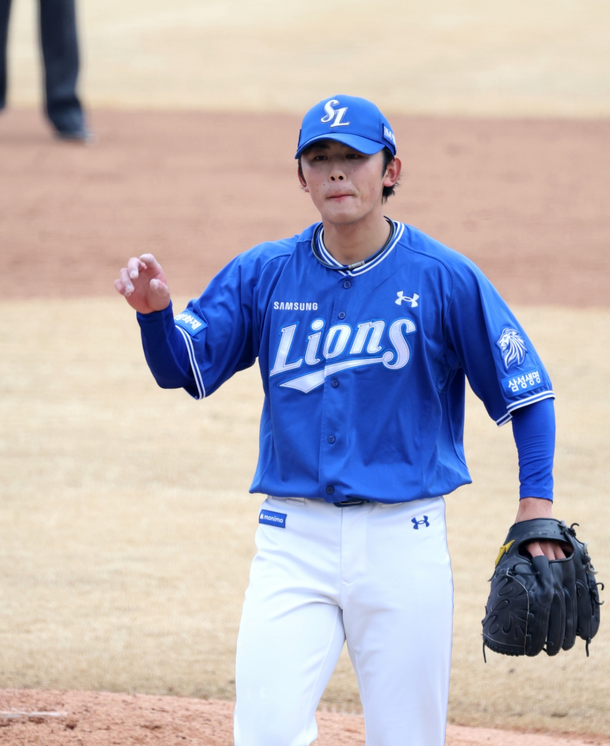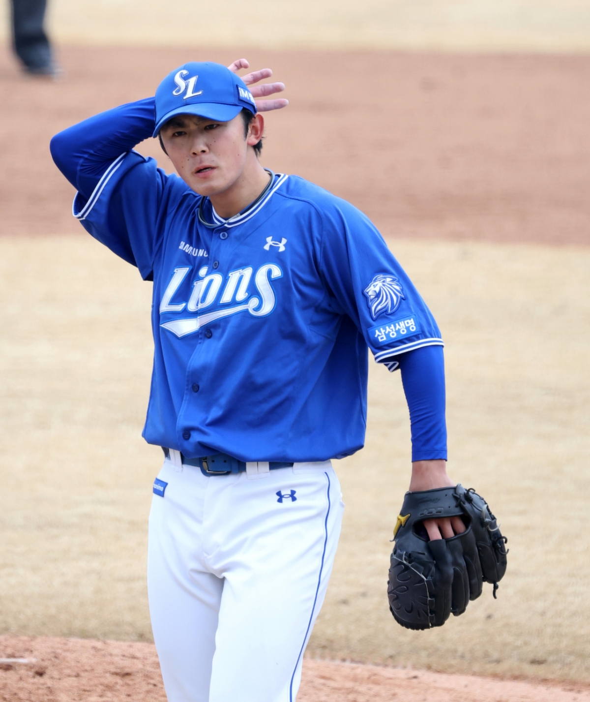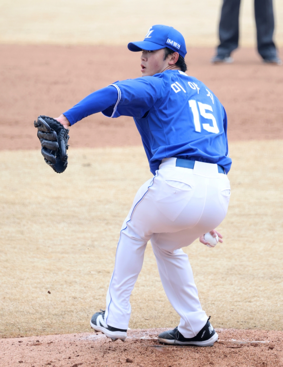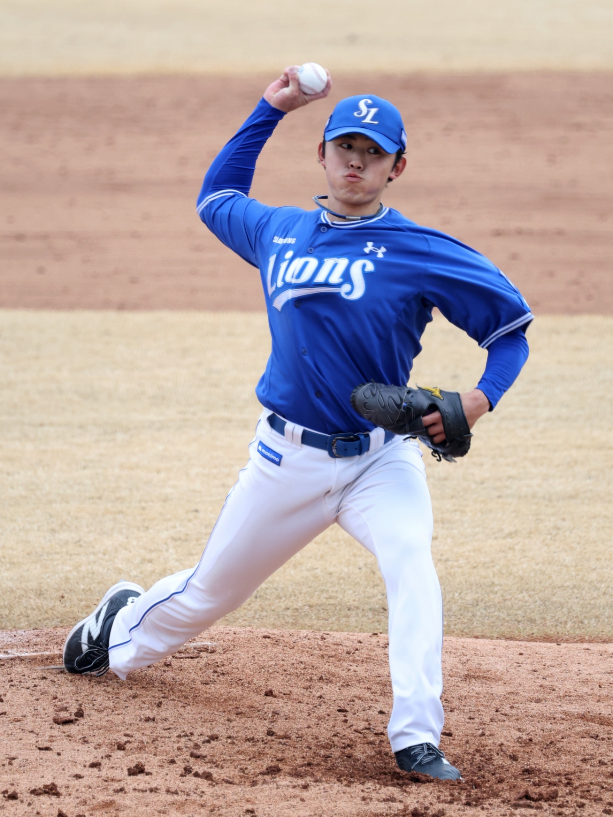 삼성 우완투수 미야지가 15일 이천 두산베어스파크에서 열린 2026 프로야구 시범경기 두산베어스와 삼성라이온즈 경기에서 역투하고 있다. 2026.03.15.