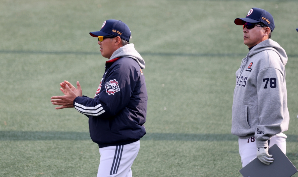 두산 김원형 감독이 15일 이천 두산베어스파크에서 열린 2026 프로야구 시범경기 두산베어스와 삼성라이온즈 경기에서 승리한 후 홍원기 코치와 선수들에 박수를 쳐주고 있다. 2026.03.15.