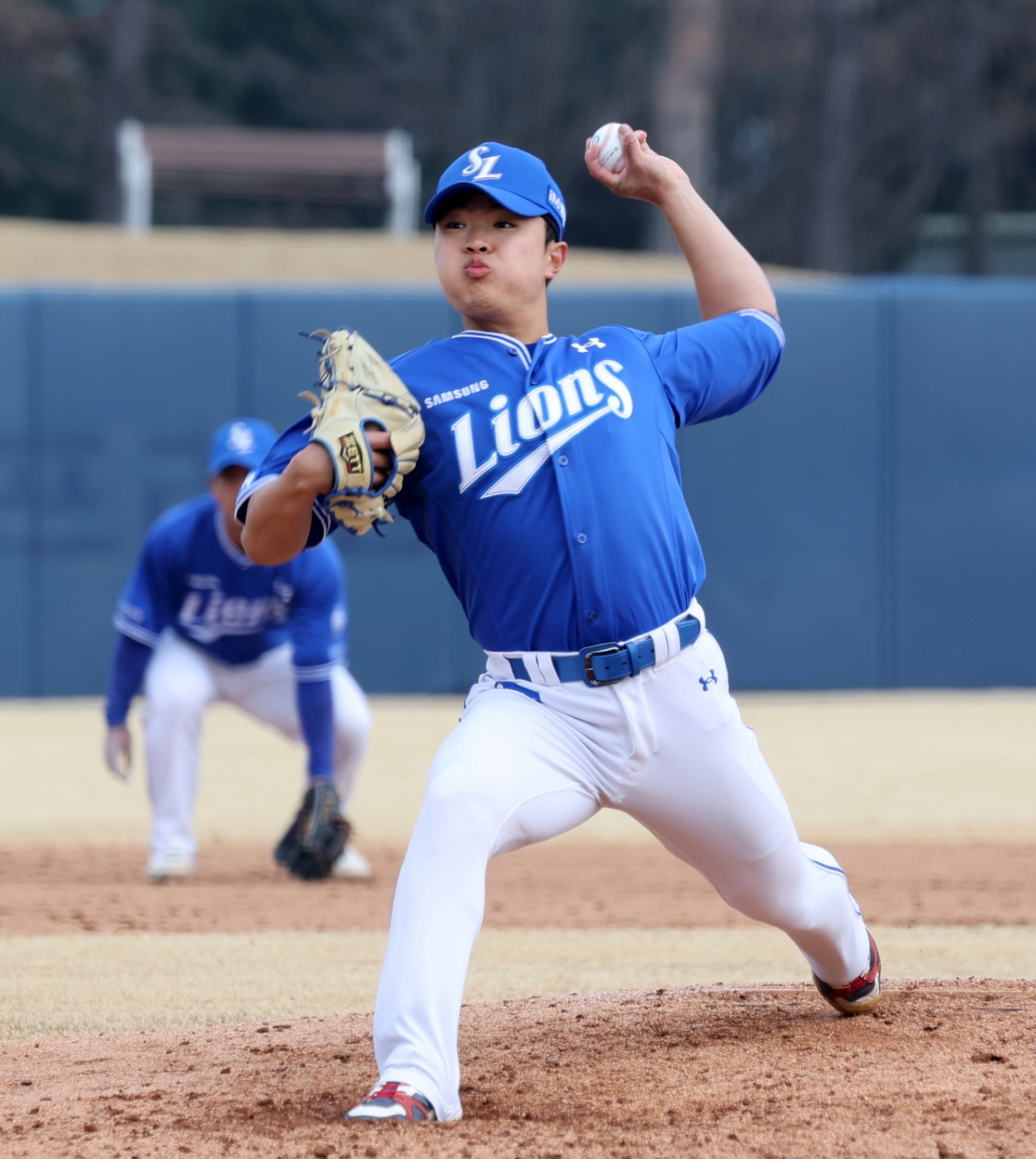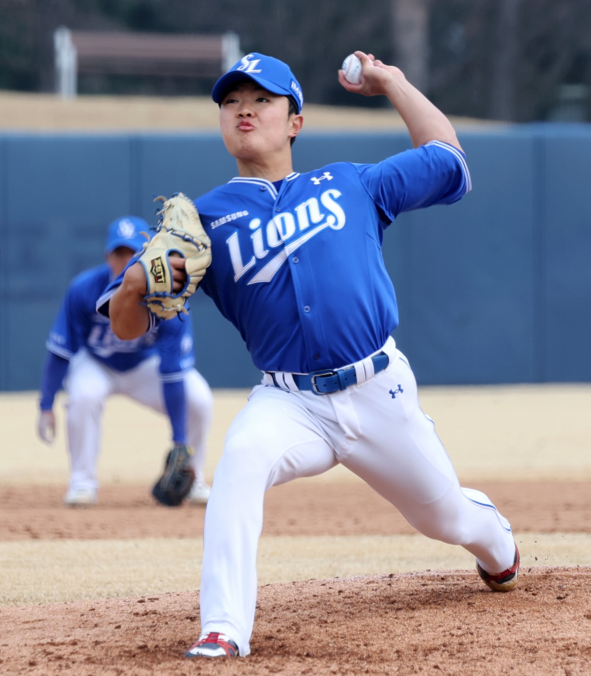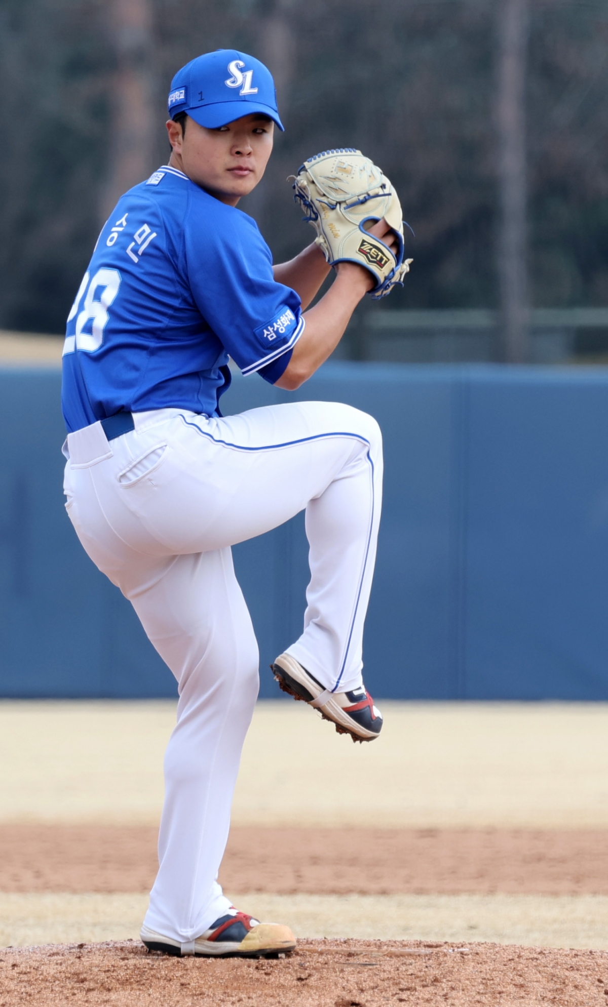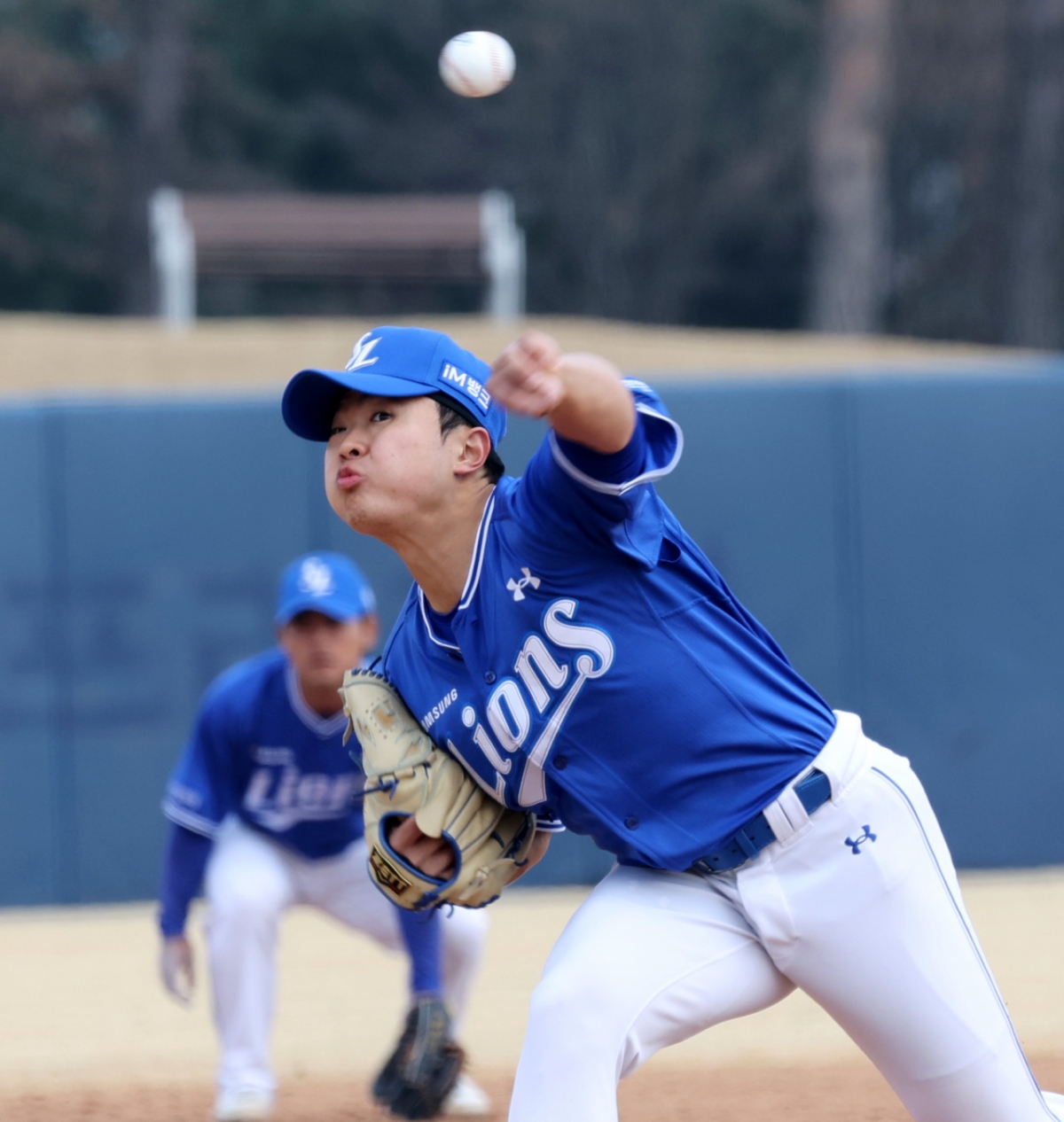삼성 좌완투수 이승민이 15일 이천 두산베어스파크에서 열린 2026 프로야구 시범경기에서 역투했다. 이승민은 두산베어스와 삼성라이온즈의 경기에서 투구했다. 경기는 2026년 3월 15일에 진행됐다.