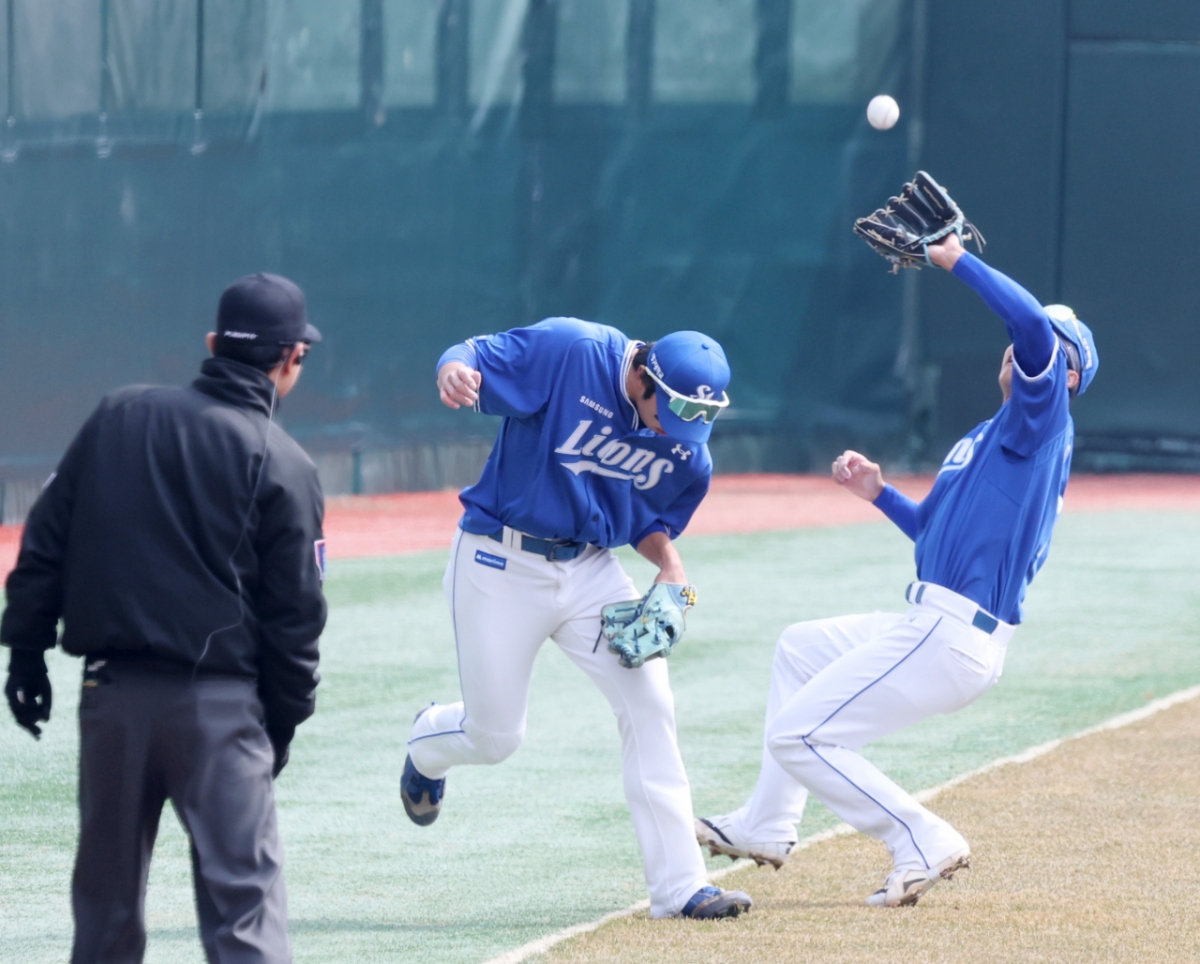 삼성 유격수 이재현이 16일 인천SSG랜더스필드에서 열린 2026 프로야구 시범경기 SSG랜더스와 삼성라이온즈 경기 1회말 SSG 1번타자 최지훈의 내야플라이를 잡아냈다. 이재현은 내야플라이를 잡아내는 모습이었다. 이 경기는 2026년 3월 16일에 진행되었다.