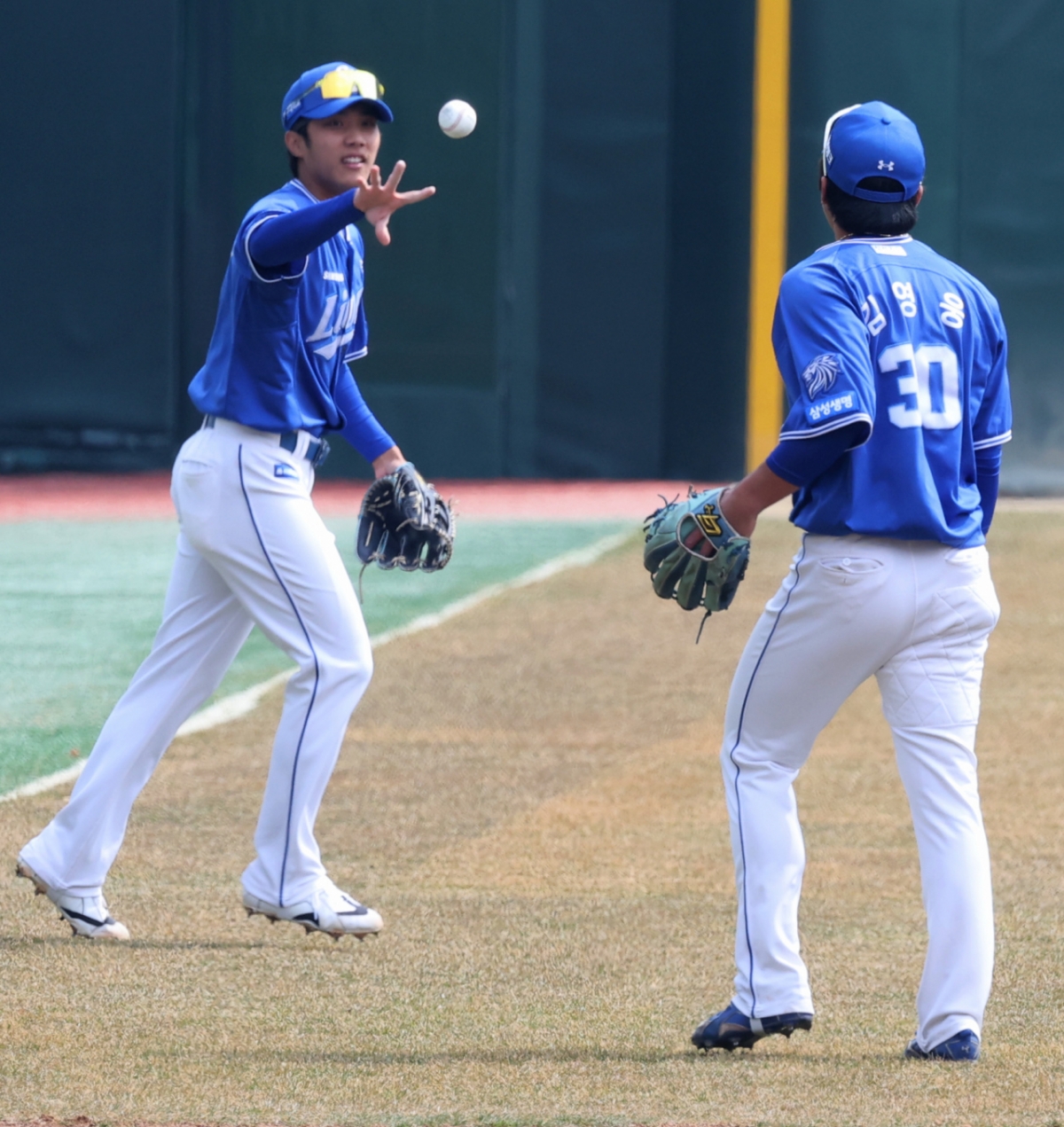 삼성 유격수 이재현이 16일 인천SSG랜더스필드에서 열린 2026 프로야구 시범경기 SSG랜더스와 삼성라이온즈 경기 1회말 SSG 1번타자 최지훈의 내야플라이를 잡아내고 있다. 2026.03.16
