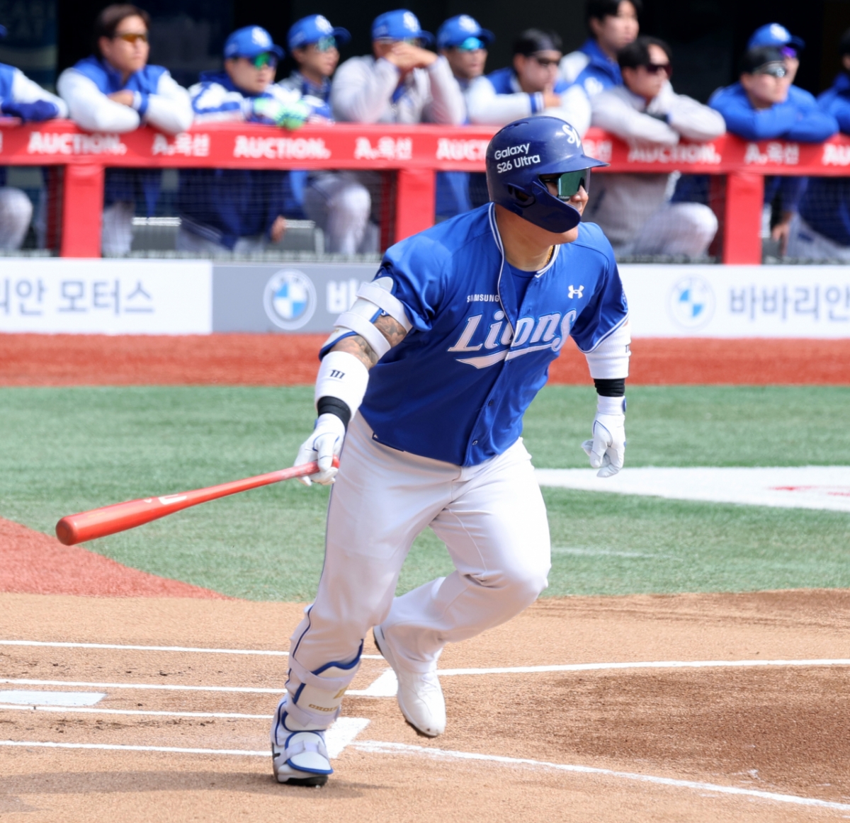 삼성 3번 지명타자 최형우가 16일 인천SSG랜더스필드에서 열린 2026 프로야구 시범경기 SSG랜더스와 삼성라이온즈 경기 1회초 범타로 물러나고 있다. 2026.03.16