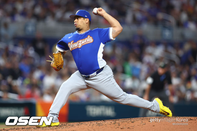 베네수엘라의 선발 투수는 케이더 몬테로. 2024년 디트로이트 타이거스에서 빅리그에 데뷔해 통산 39경기에 등판해 11승 9패 평균자책점 4.57을 기록 중이다.