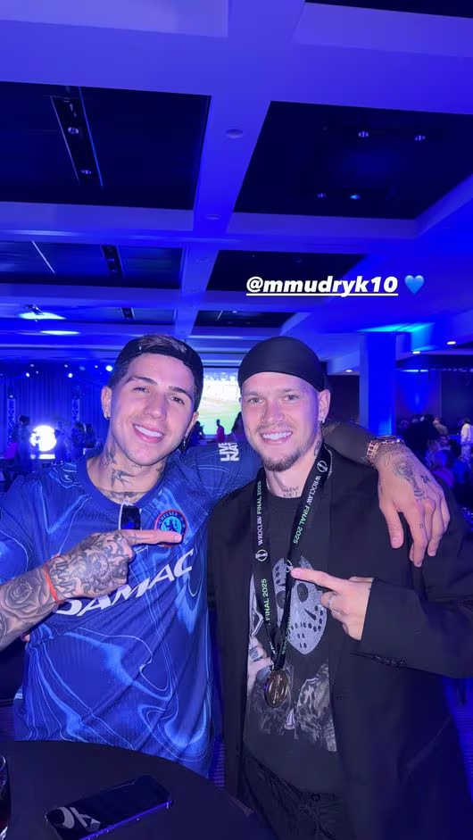 무드릭은 지난해 5월 폴란드 브로츠와프에서 열린 유럽축구연맹(UEFA) 유로파컨퍼런스리그(UECL) 결승전에서 첼시가 레알 베티스를 꺾은 직후 가진 우승 파티에 모습을 드러내기도 했다.