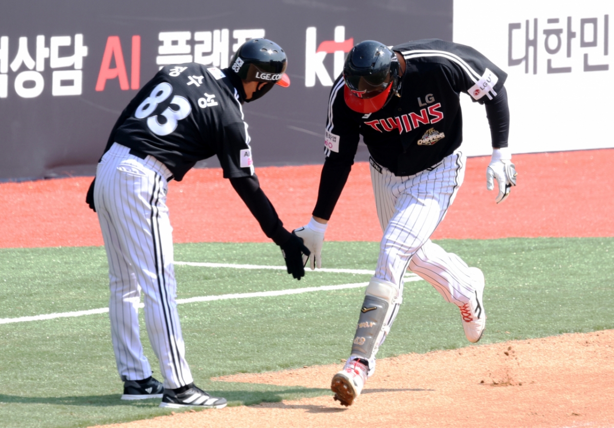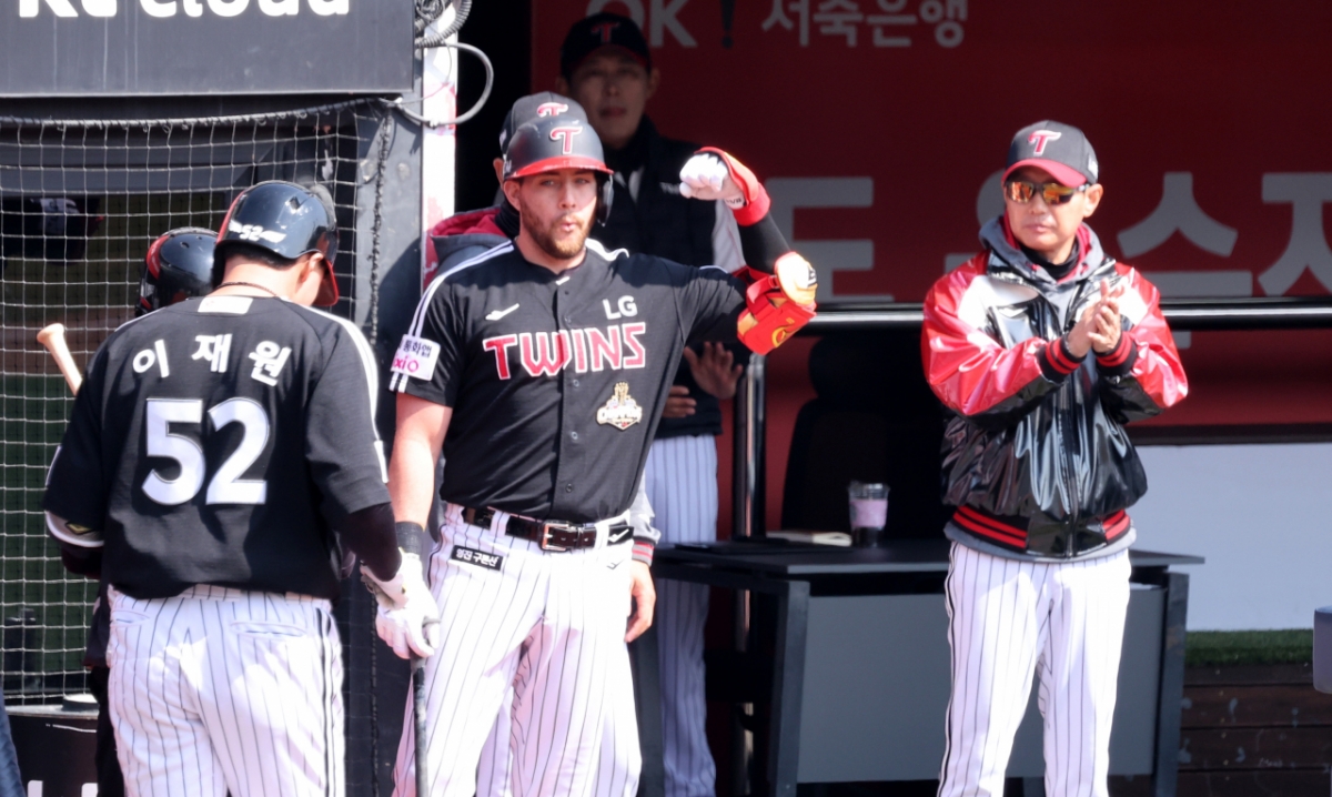 LG의 1번 타자 이재원이 17일 KT위즈파크에서 열린 2026 프로야구 시범경기에서 KT위즈를 상대로 첫 타석에서 선제 솔로 홈런을 터트렸다. 이재원은 1회초 선두타자로 나와 오원석을 상대로 홈런을 기록했다. 그는 홈런 후 염경엽 감독의 축하를 받았다. LG 1번타자 이재원이 17일 KT위즈파크에서 열린 2026 프로야구 시범경기 KT위즈와 LG트윈스 경기 1회초 선두타자로 나와 오원석을 상대로 선제 솔로홈런을 터트린 후 염경엽 감독의 축하를 받고 있다. 2026.03.17. 독자들의 PICK! "옆방서 불륜" 남편의 내연녀는 '엄마'...여배우, 20년 절연 고백 "'이숙캠' 방송 후 부부관계 더 나빠져"...걱정부부 끝내 이혼소송 '10대 소년 성폭행' 유명 남성 배우, 교도소에서 사망 '40억 건물주' 이해인 "월이자 1200만원·공실 6개...무서워"