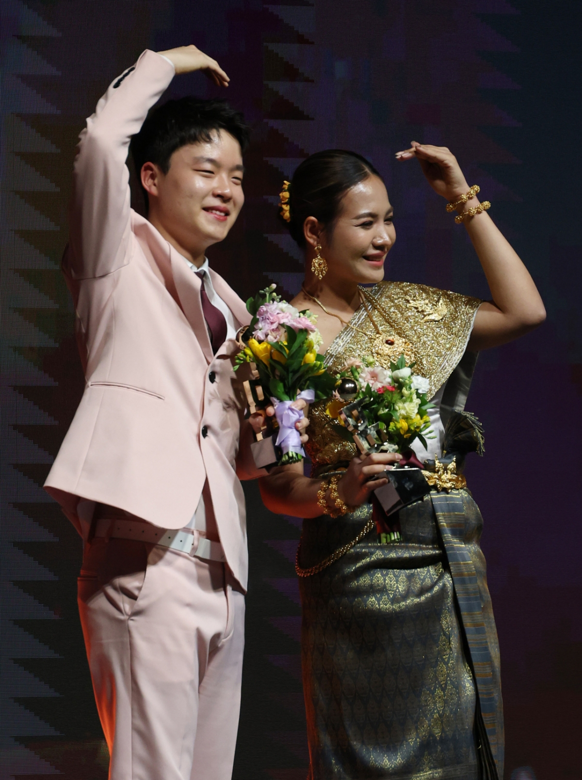 김영원(하림)과 스롱 피아비(우리금융캐피탈)이 베스트퍼포먼스상을 수상한 후 포즈를 취하고 있다.