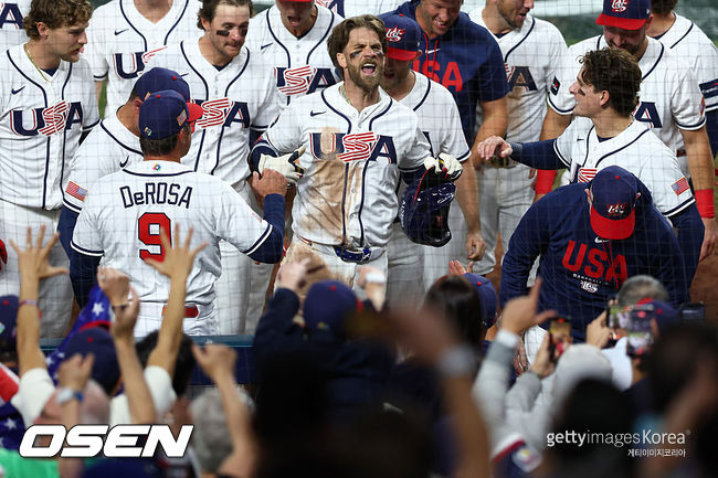 미국 드림팀이 8회말 마침내 깨어났다. 2사 주자 없는 상황에서 위트 주니어가 스트레이트 볼넷을 골라냈고, 미국의 상징 하퍼가 등장해 극적인 동점 투런포를 쏘아 올렸다. 안드레스 마차도의 초구 볼을 지켜본 뒤 2구째 가운데로 들어온 93마일(149km) 밋밋한 체인지업을 공략, 비거리 432피트(131m) 대형 중월 홈런을 쳤다. 하퍼는 그 어느 때보다 포효하며 동점의 기쁨을 만끽했다.