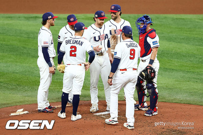 미국은 베네수엘라 좌완 선발 에두아르도 로드리게스를 맞아 바비 위트 주니어(유격수) 브라이스 하퍼(1루수) 애런 저지(우익수) 카일 슈와버(지명타자) 알렉스 브레그먼(3루수) 앤서니 로만(좌익수) 윌 스미스(포수) 브라이스 투랑(2루수) 바이런 벅스턴(중견수) 순의 호화 라인업을 꾸렸다.