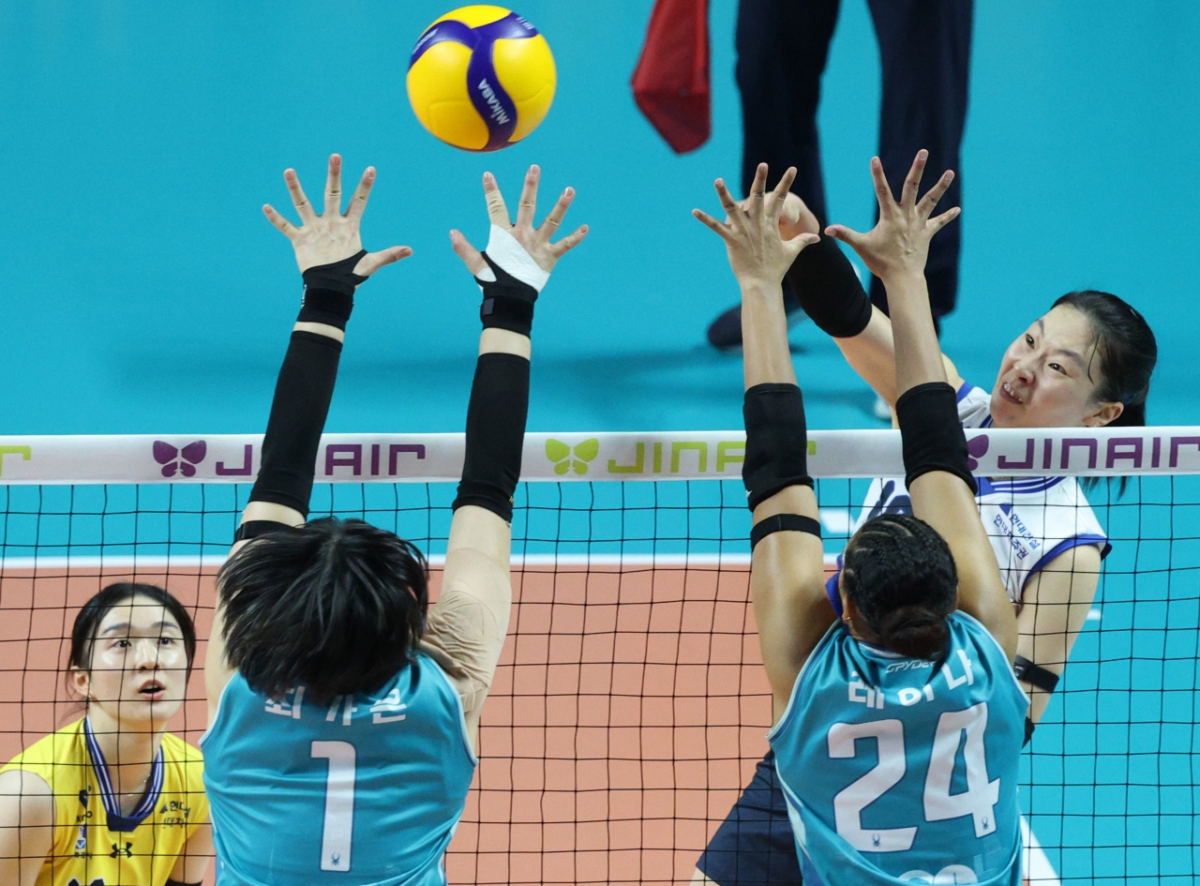 2025-2026시즌 V리그 여자부 GS칼텍스와 현대건설의 경기가 18일 서울 장충체육관에서 열렸다. 현대건설 지민경은 GS칼텍스 최가은, 레이나의 블로킹 위로 강스파이크를 날렸다. 이 경기는 V리그 여자부 경기였다. 2025-2026시즌 V리그 여자부 GS칼텍스 대 현대건설 경기가 18일 서울 장충체육관에서 열렸다. 현대건설 지민경이 GS칼텍스 최가은, 레이나의 블로킹 위로 강스파이크를 날리고 있다. 독자들의 PICK! "부부 침대에 시누이 들어온 것"…누나만 챙기는 남편 '경악' "심장병 딸 보다 내 부모 중요"…'서프라이즈' 배우 이혼 사유 충격 김구라 "나도 사랑했지만 이혼" 발끈...'17억 빚' 전처 언급 "'이숙캠' 방송 후 부부관계 더 나빠져"...걱정부부 끝내 이혼소송