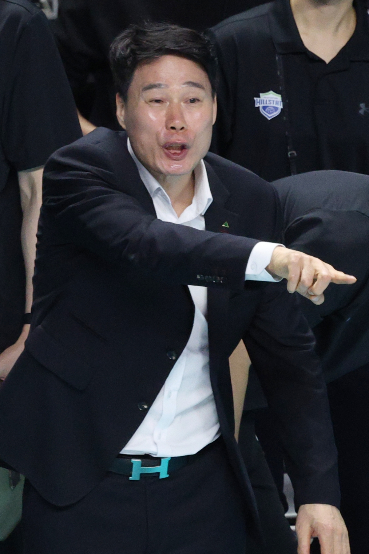 현대건설 강성형 감독이 선수들의 실수를 질책하고 있다.