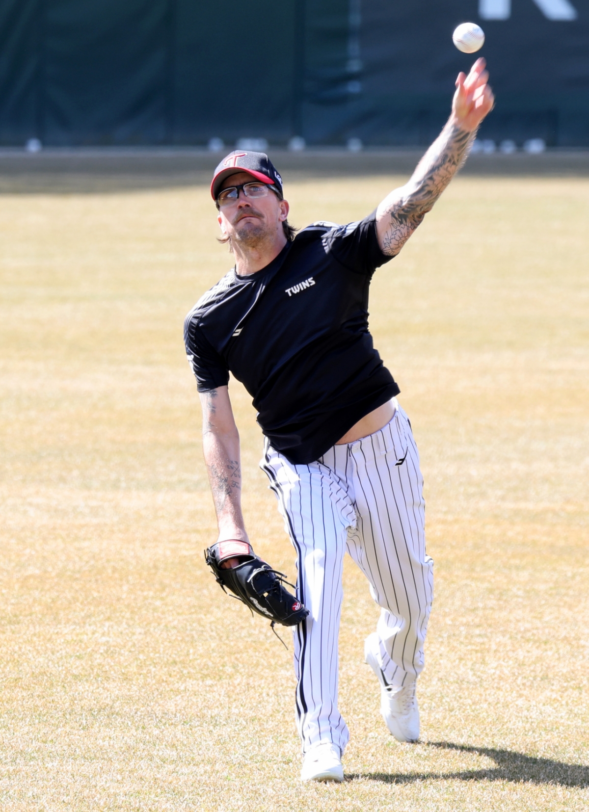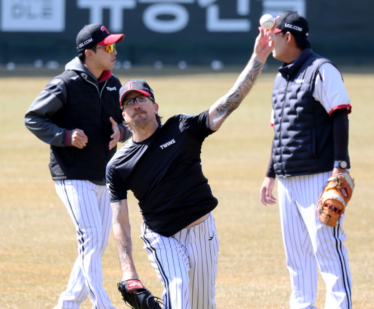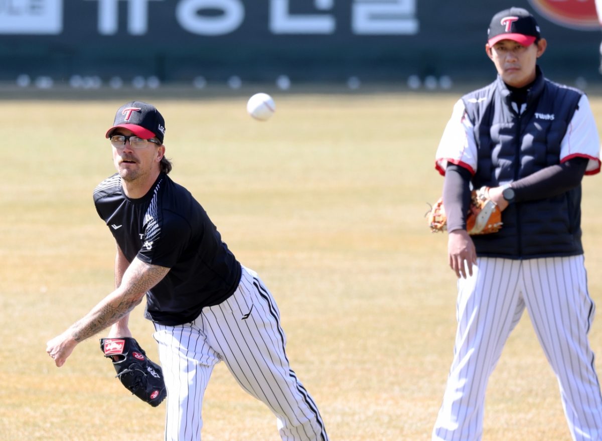 LG 웰스가 19일 인천SSG랜더스필드에서 열리는 2026프로야구 ㄴSSG랜더스와 LG트윈스 경기를 앞두고 캐치볼로 몸을 풀고 있다. 2026.03.19.