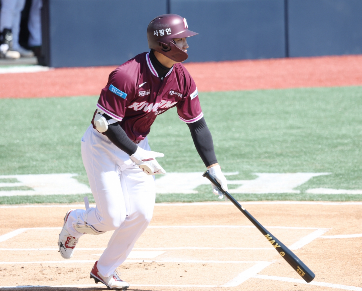 키움 이주형이 3회초 2사에서 동점 유중월 1점 홈런을 날리고 있다.