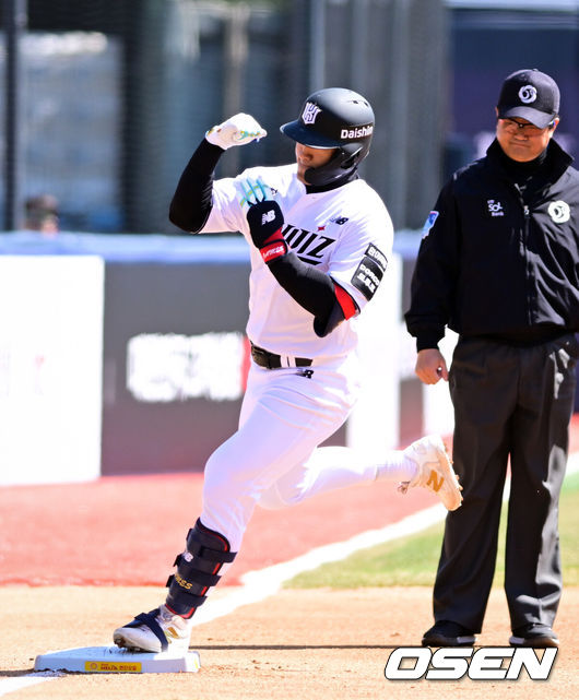 KT는 1회말 2사에서 안현민이 선제 솔로홈런을 쏘아올리며 기선을 제압했다. 키움은 3회초 2사에서 이주형이 솔로홈런으로 응수했다. KT는 4회말 1사에서 김상수가 안타를 때려냈고 허경민이 2루타를 날리며 1사 2, 3루 찬스를 연결했다. 한승택은 1타점 희생플라이를 쳐 KT가 다시 2-1로 앞서나갔다.
