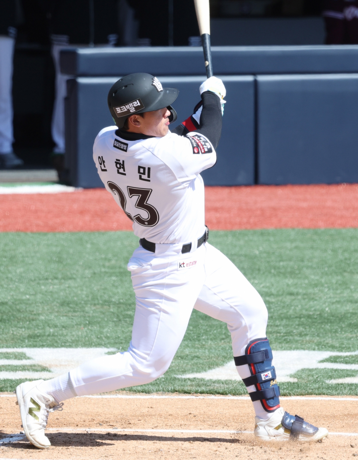 17일 LG 트윈스와 시범 경기에는 결장했던 안현민은 이날 올해 시범 경기에 처음 출전, 괴물의 복귀를 알렸다.