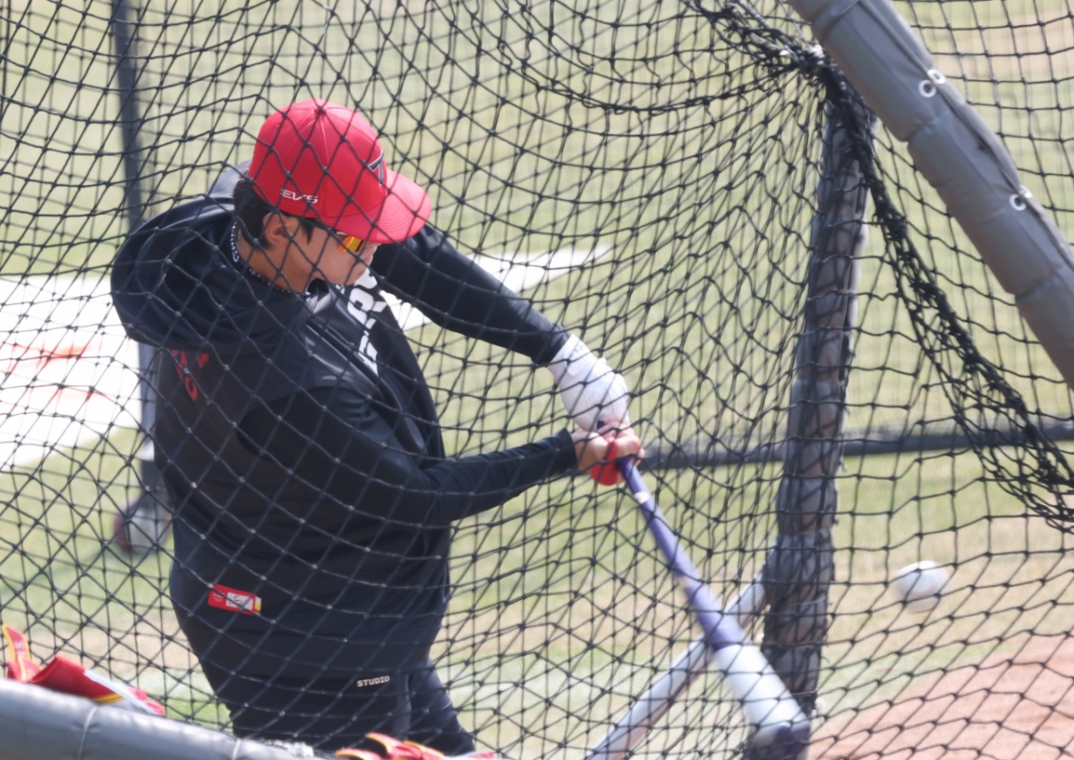 22일 서울 잠실야구장에서 2026 신한 SOL Bank KBO리그 시범경기 두산 베어스 대 KIA 타이거즈 경기가 열렸다. KIA 김도영이 타격 훈련을 했다. 김도영은 훈련에 집중하는 모습을 보였다.