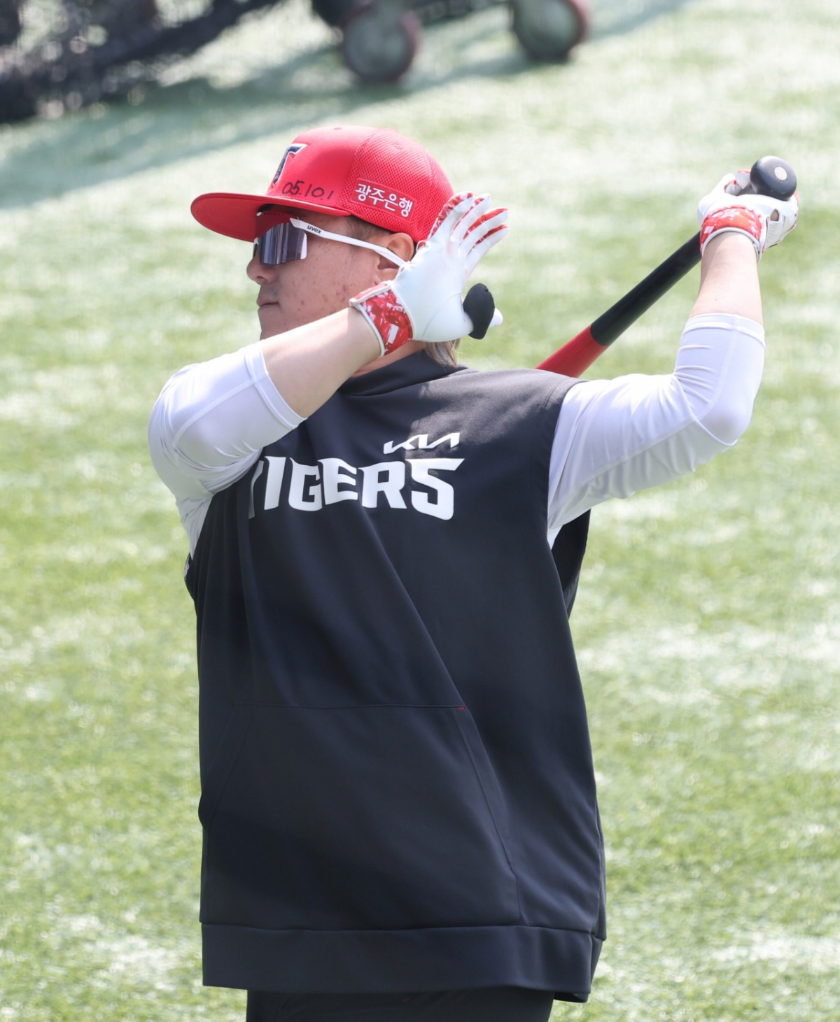 KIA 김선빈이 타격 훈련을 하고 있다.