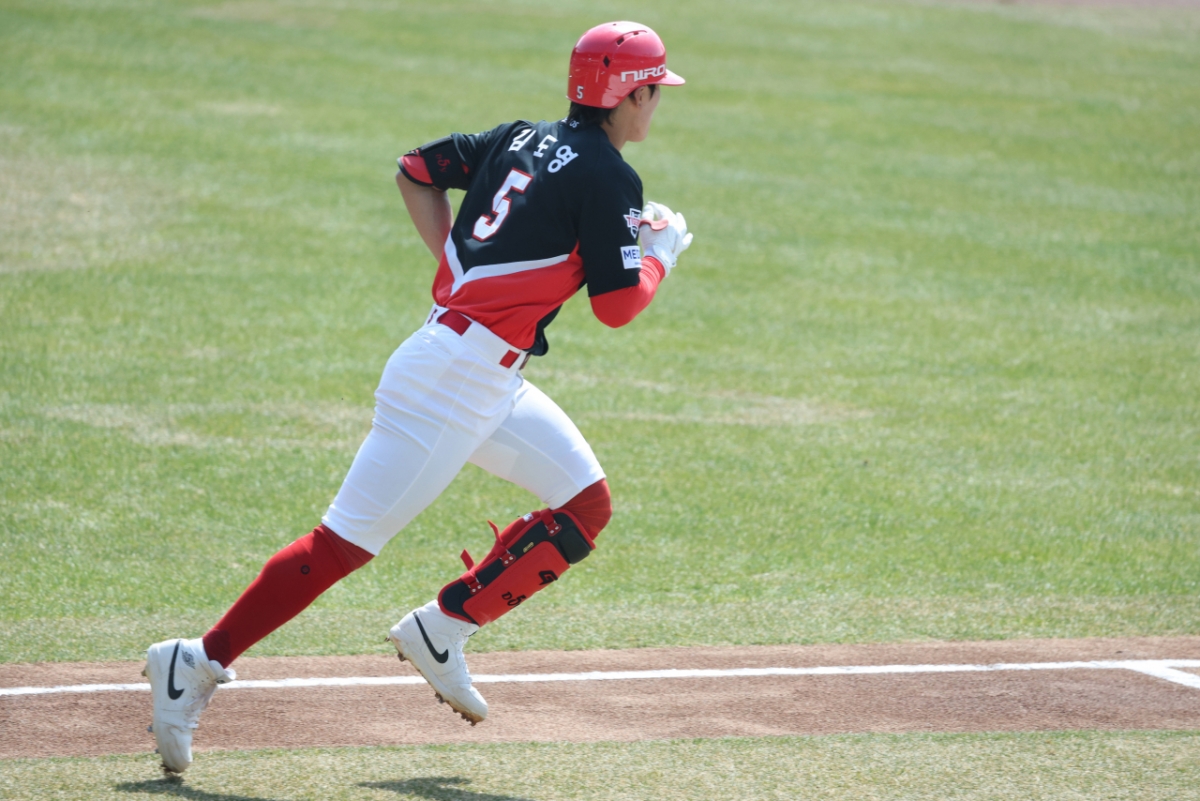 22일 서울 잠실야구장에서 2026 신한 SOL Bank KBO리그 시범경기 두산 베어스 대 KIA 타이거즈 경기가 열렸다. KIA 김도영은 1회초 2사에서 좌전 안타를 날렸다. 김도영은 안타를 치고 질주했다.