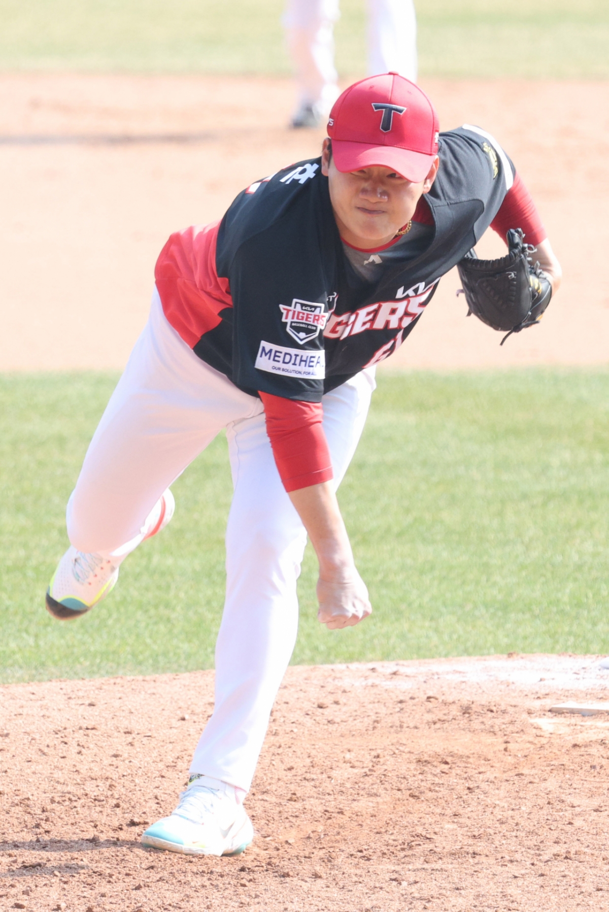 KIA 김시훈이 역투하고 있다.