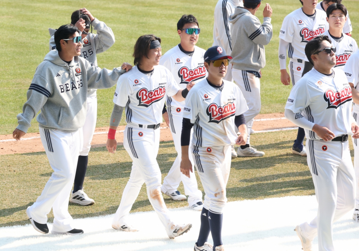 22일 서울 잠실야구장에서 2026 신한 SOL Bank KBO리그 시범경기 두산 베어스 대 KIA 타이거즈 경기가 열렸다. 경기 종료 후 박찬호를 비롯한 두산 선수들이 팬들에게 인사했다. 박찬호는 잠실도 따뜻하다고 말했다.