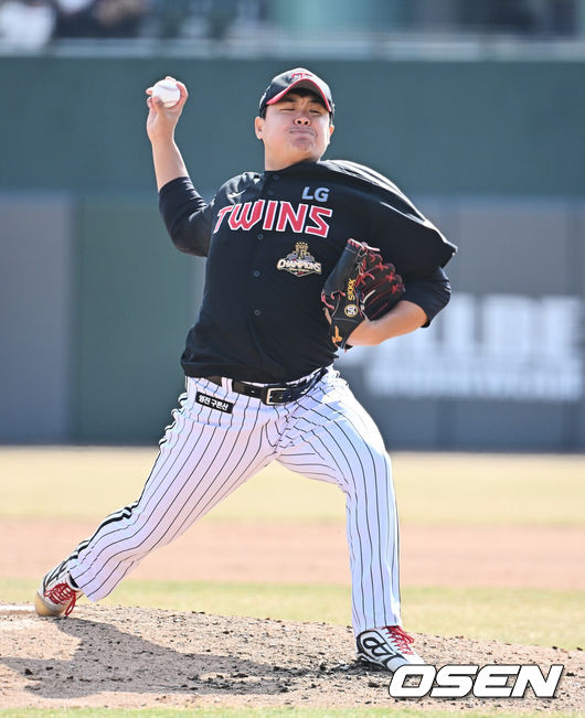정우영은 첫 타자 심재훈에게 몸에 맞는 공을 허용하며 불안하게 출발했다. 폭투로 2루 진루를 허용했고, 함수호에게 볼넷을 내줬다. 이어 대타 윤정빈의 내야 안타로 만루 위기를 자초했고, 전병우에게 밀어내기 볼넷을 허용하며 실점했다.